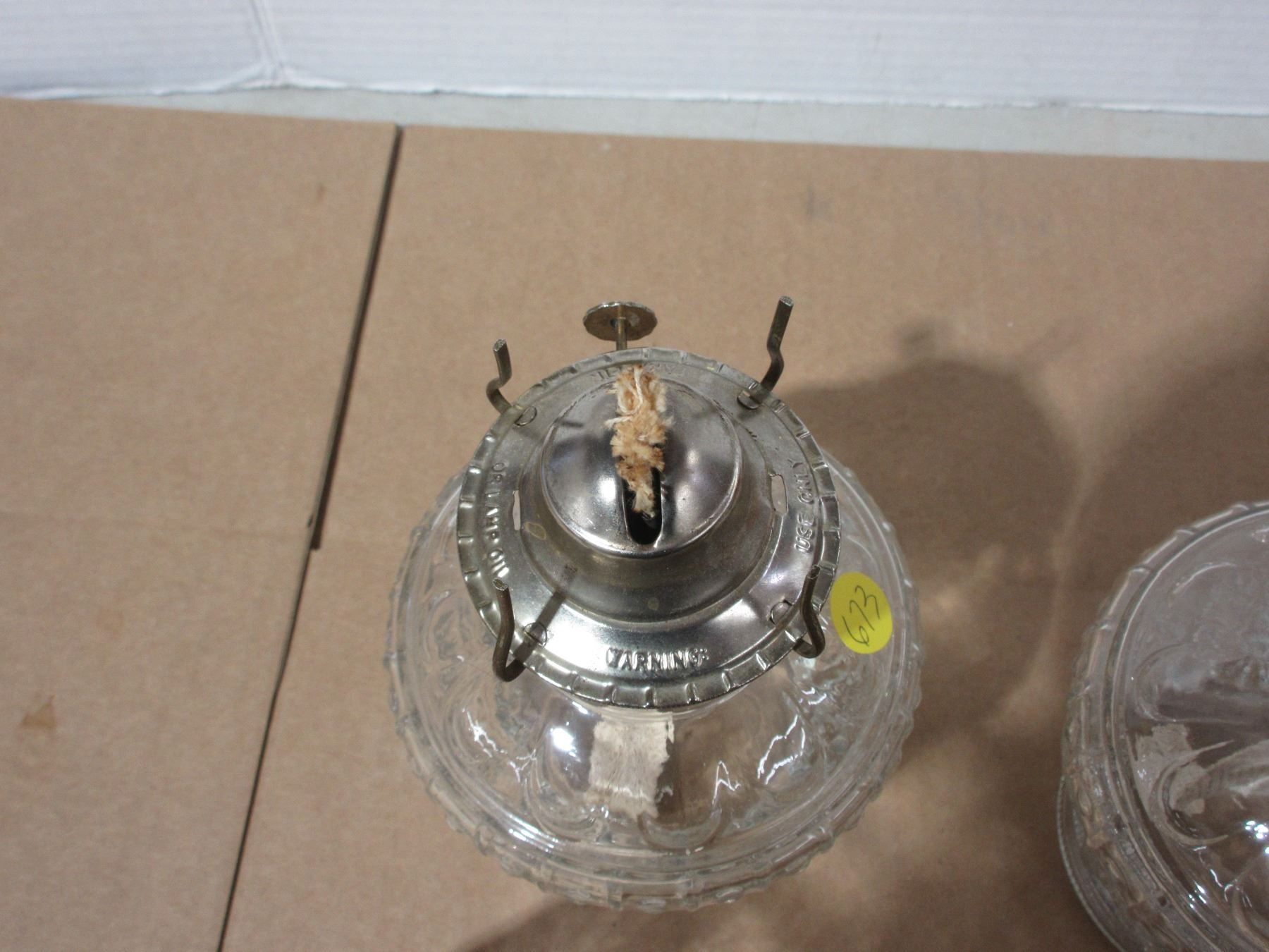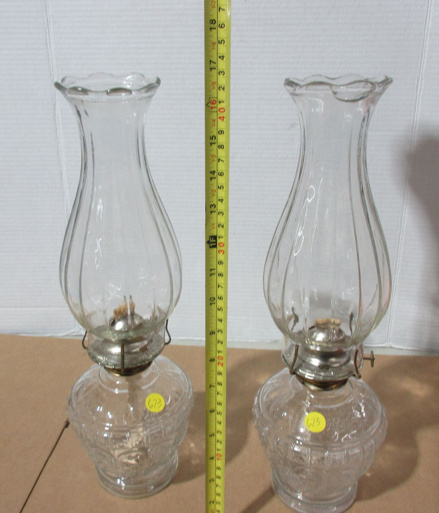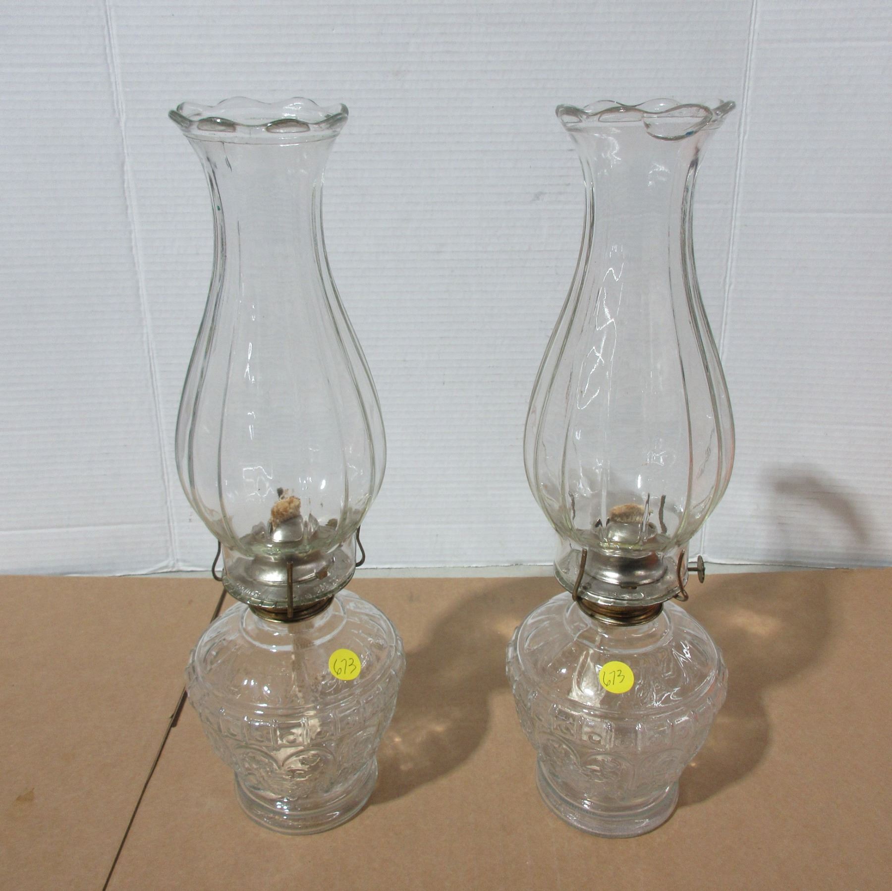 (2) Vintage Oil Lamps with a J on bottom. (Crack/Chip On Lamp Shades)