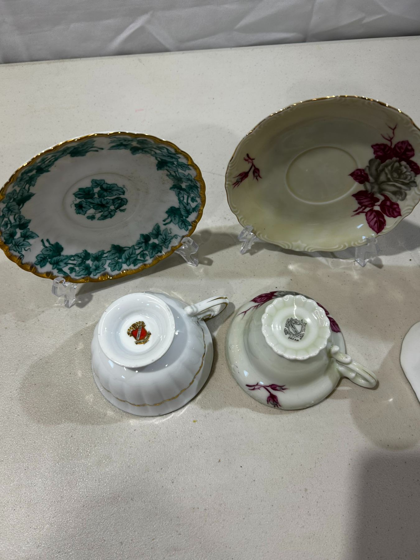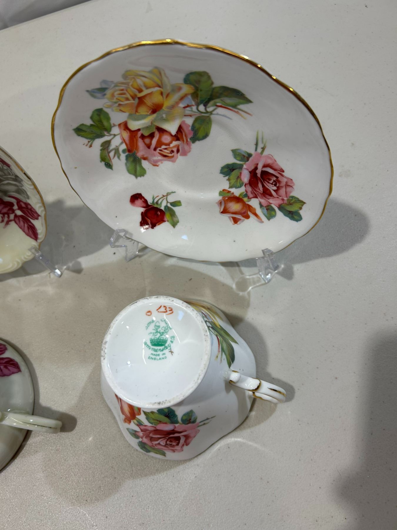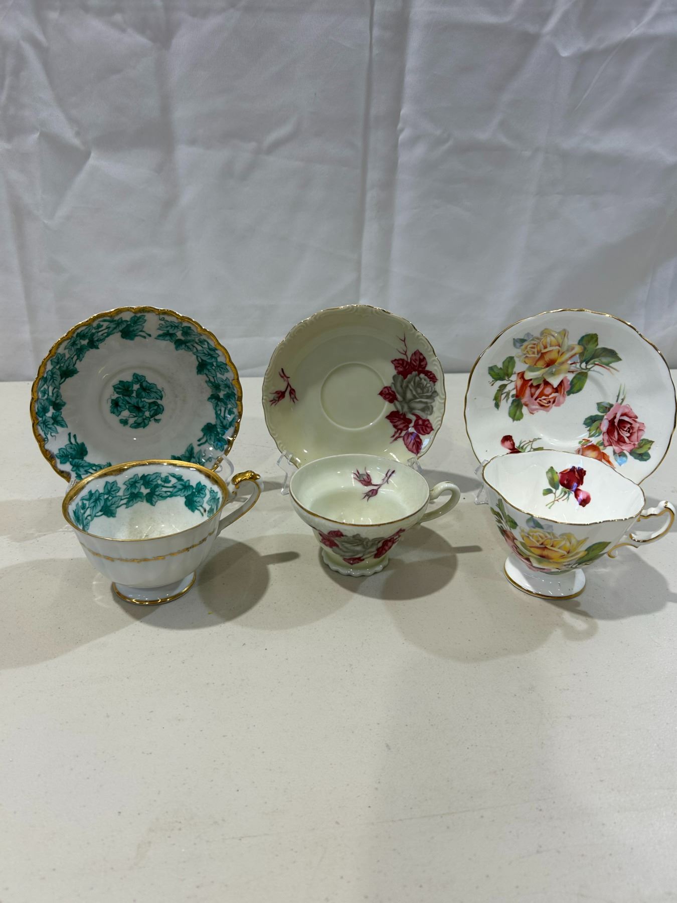 2 Vintage Shafford teacups and saucers & 1 vintage Hammersley teacup and saucer