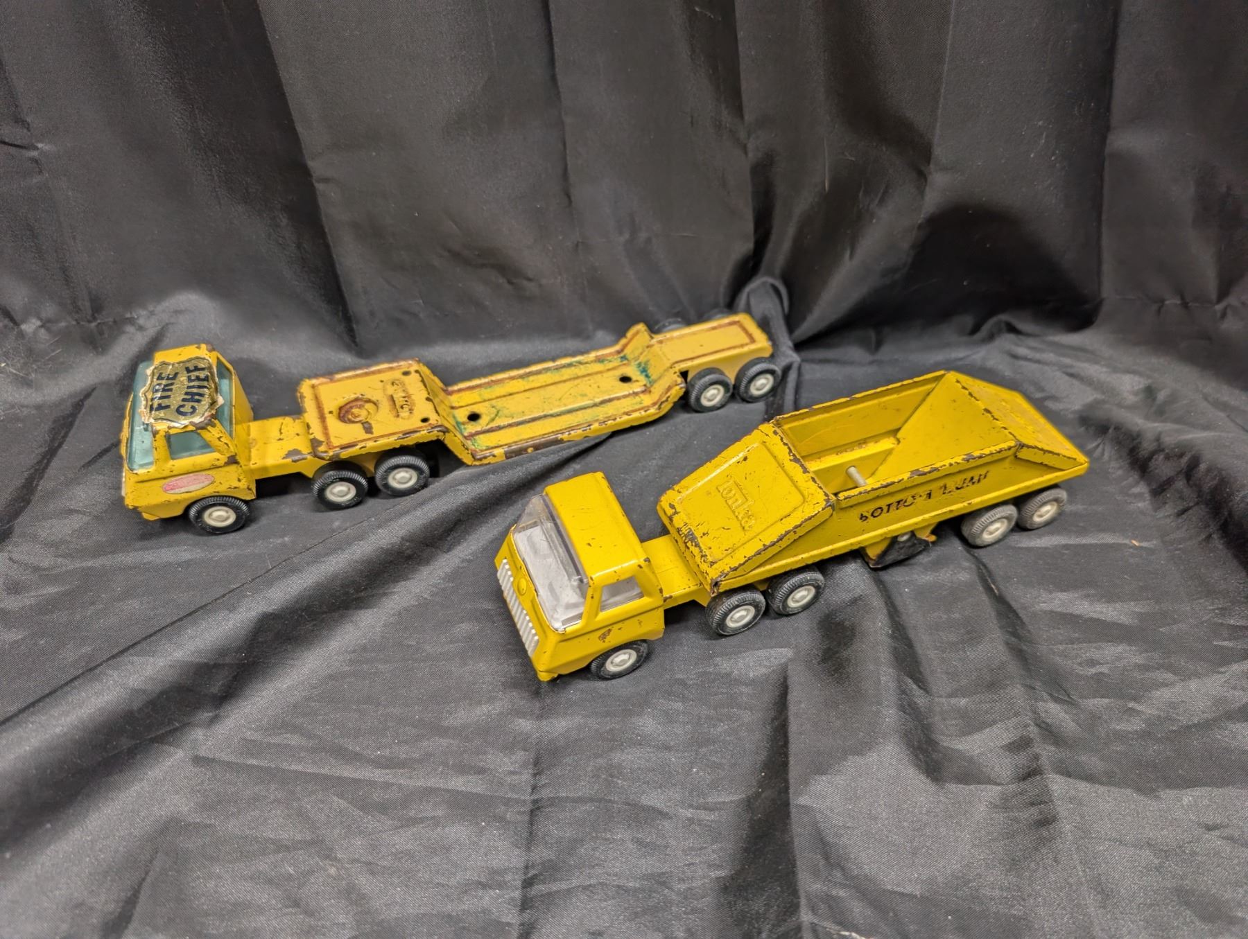 (2) Vintage Tonka Tin Metal Flatbed and Bottom Dump