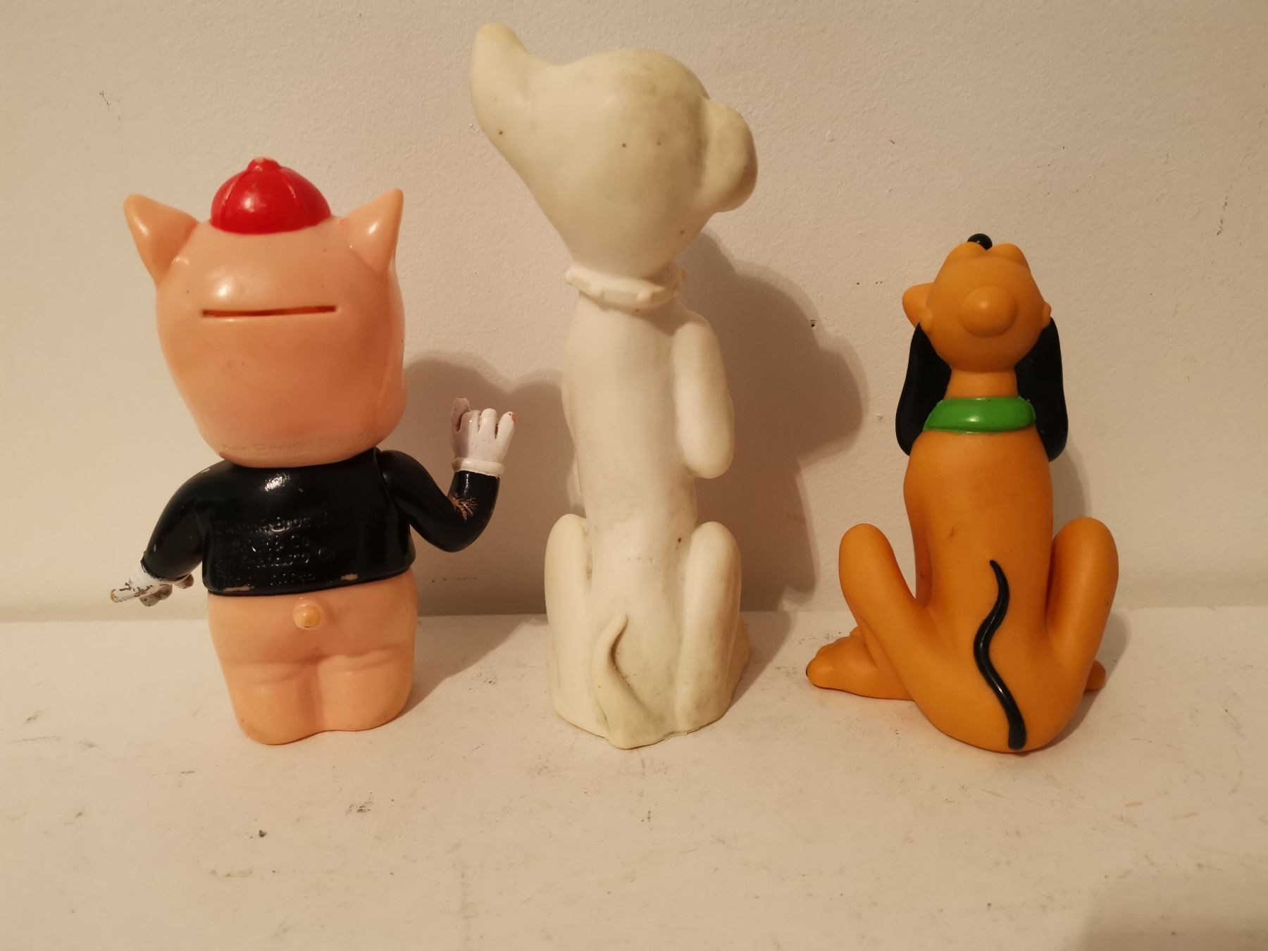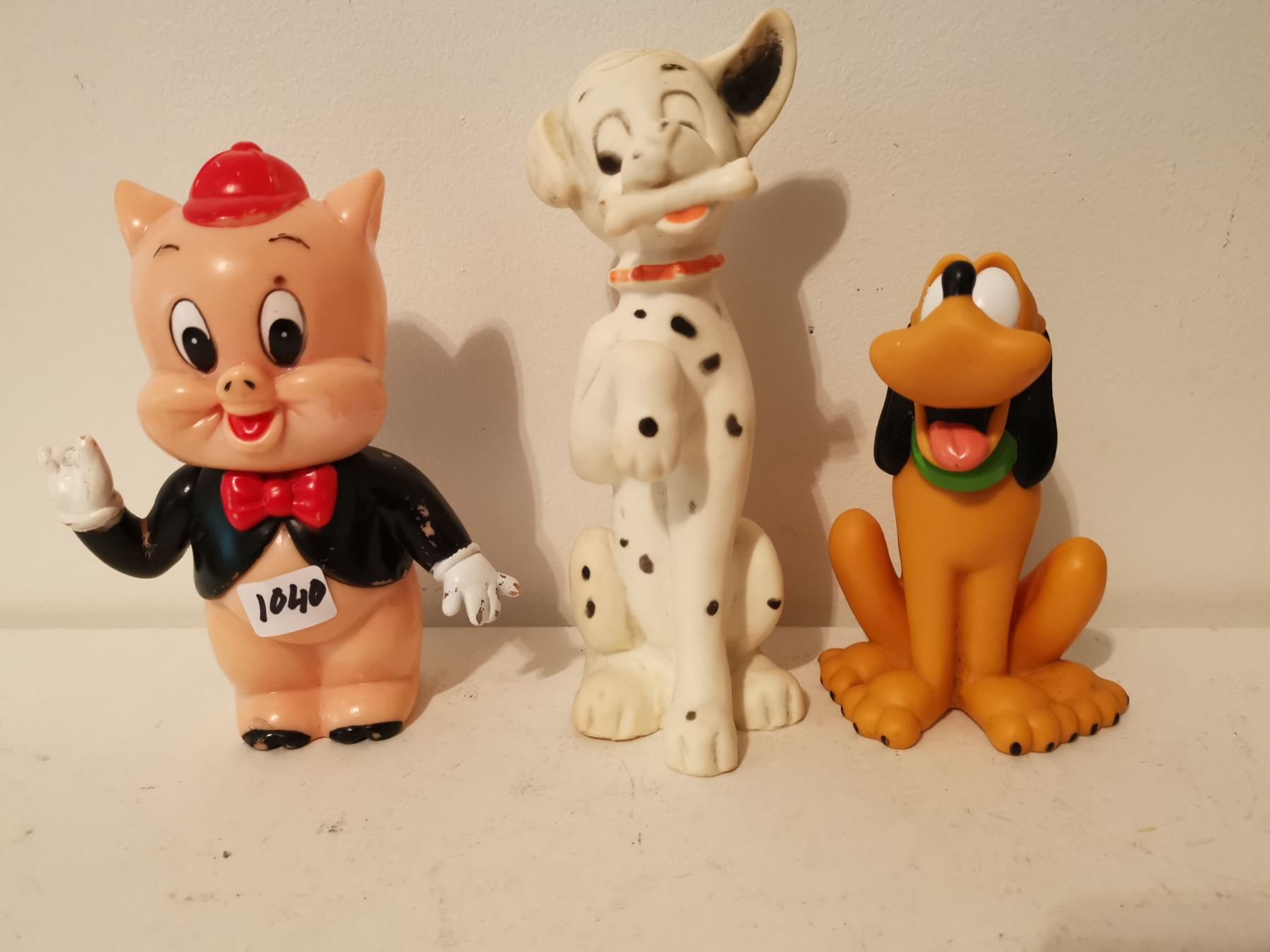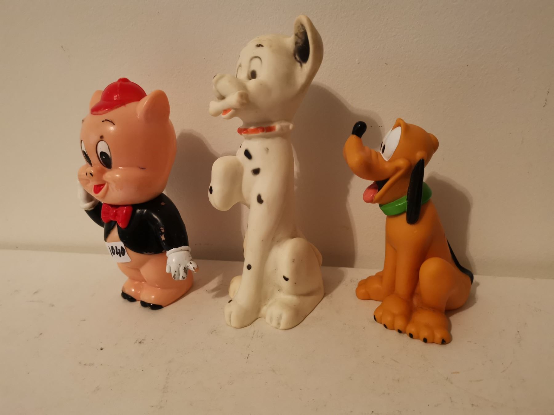 2 Vintage Walt Disney dogs, Dalmation & Pluto + Porky pig bank