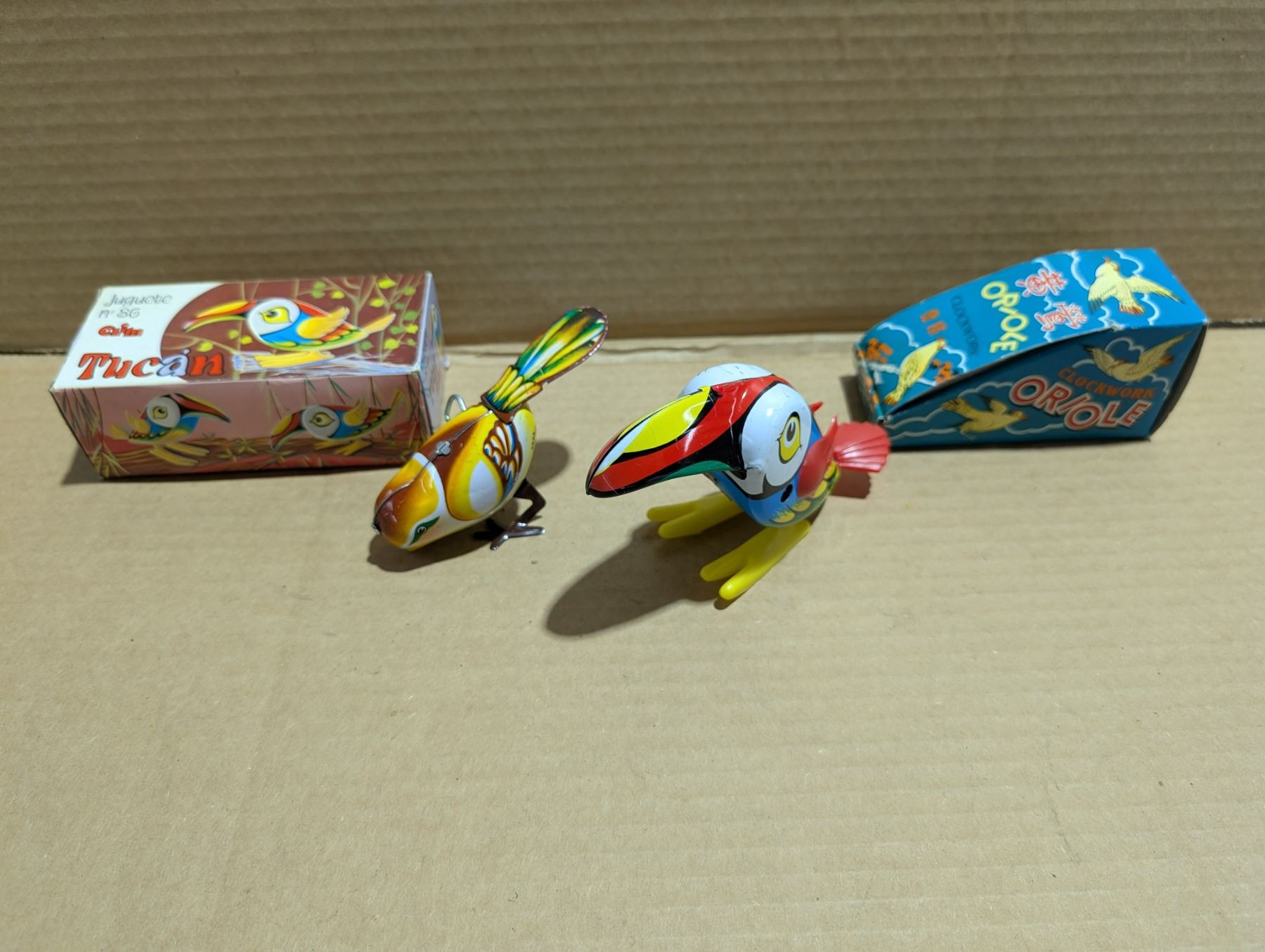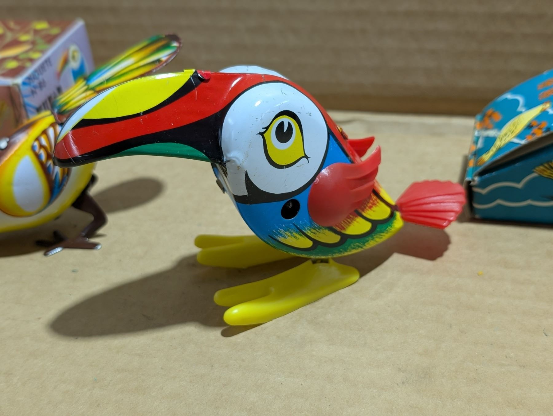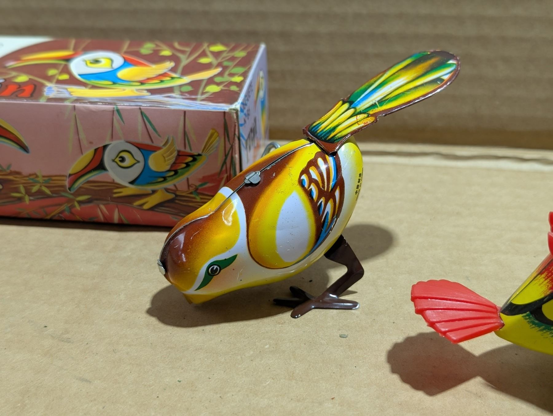 (2) Vintage Wind Up Bird Toys w/ Original Boxes (Both Work)