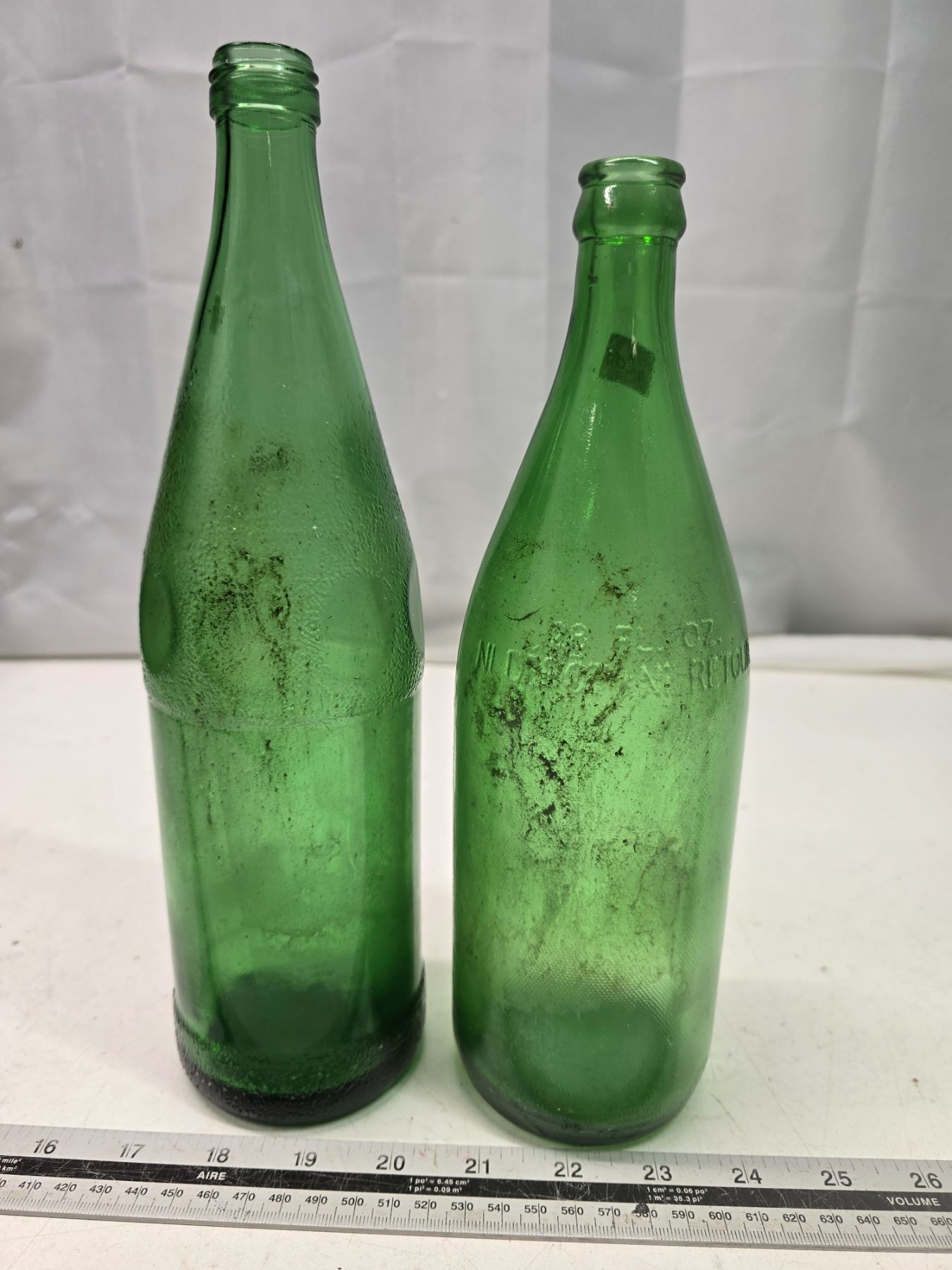 2 Vintage green pop bottles - 1 way Owens, Illinois
