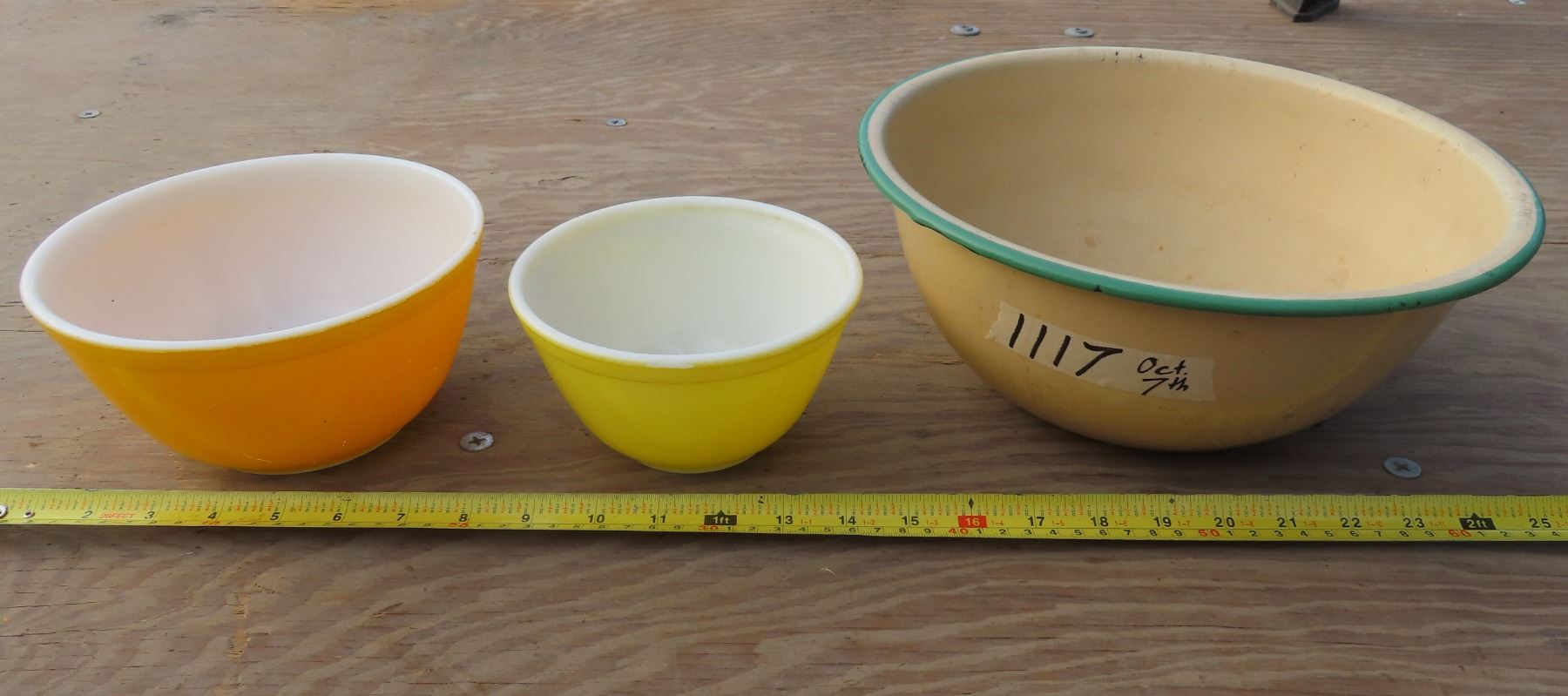 2 Vintage yellow Pyrex bowls & Ceramic bowl