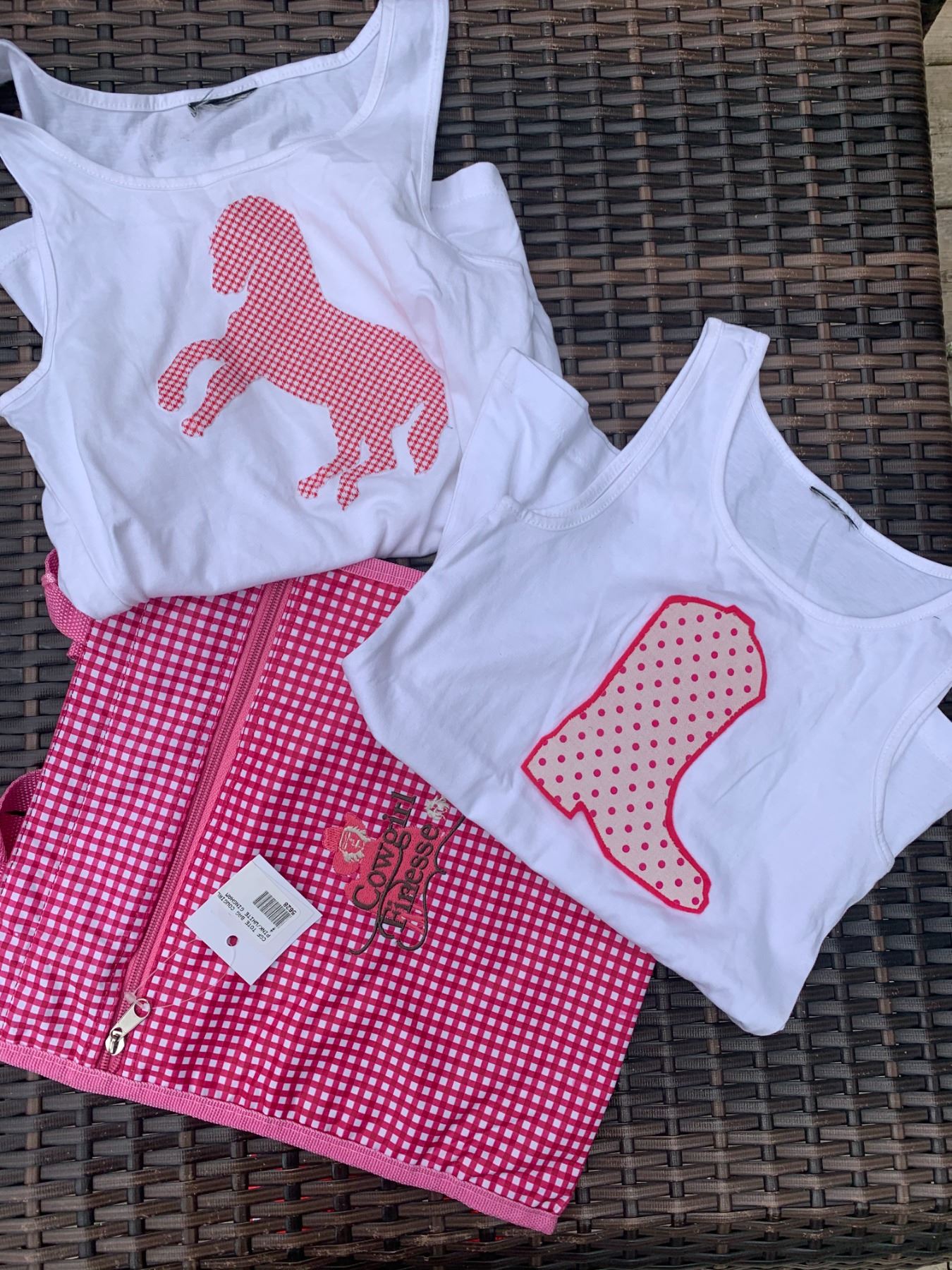 2 WIHITE TANK TOPS /SIZE 6, SIZE 8/COWGIRL FINESSE TOTE BAG