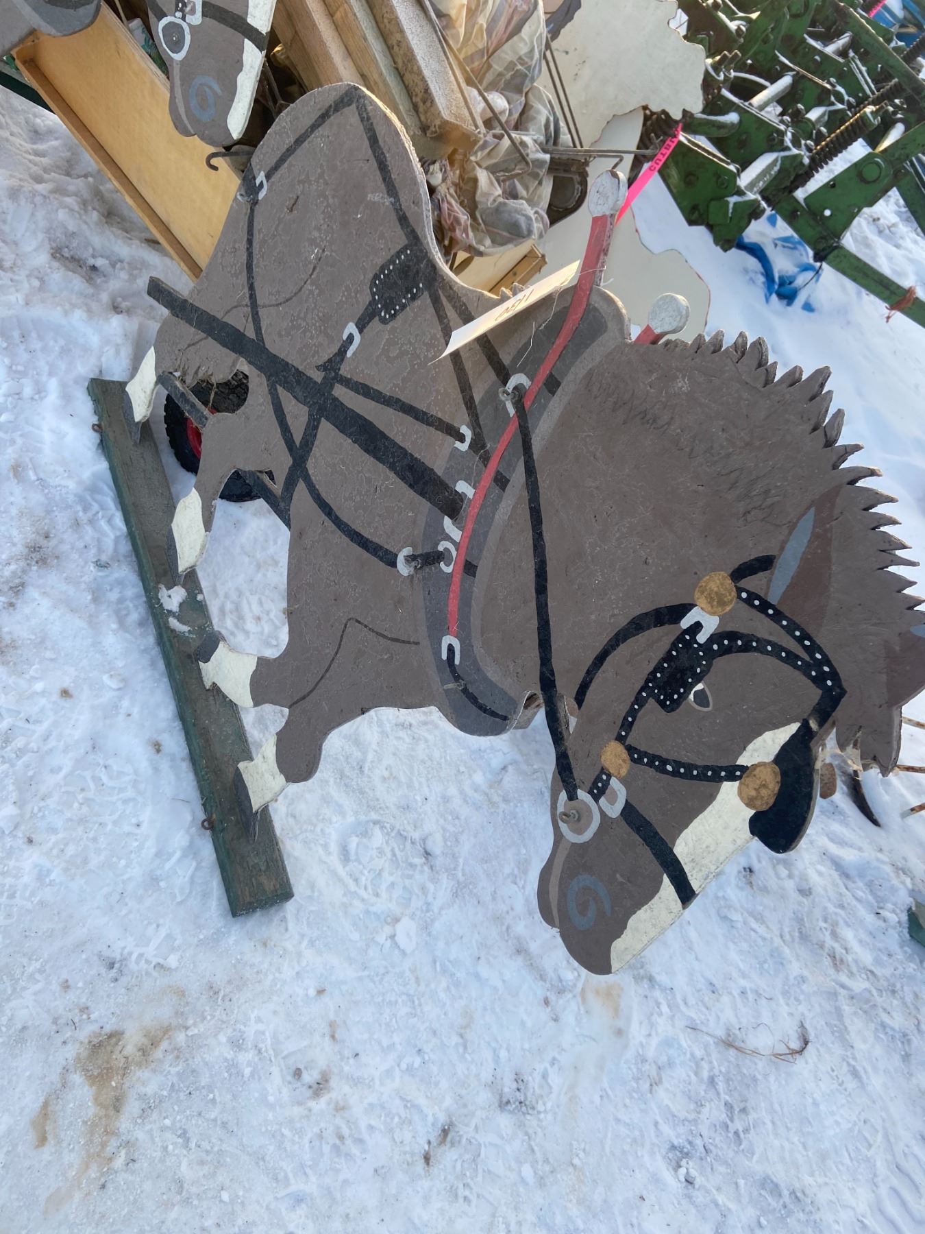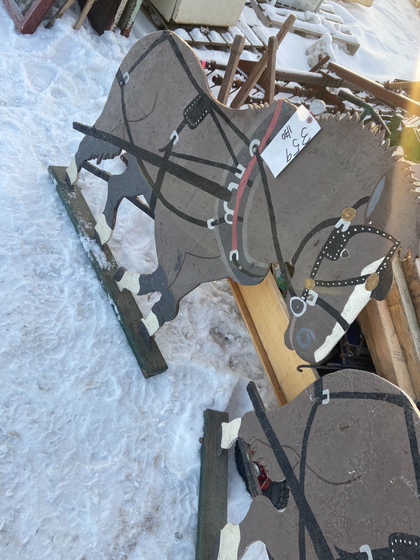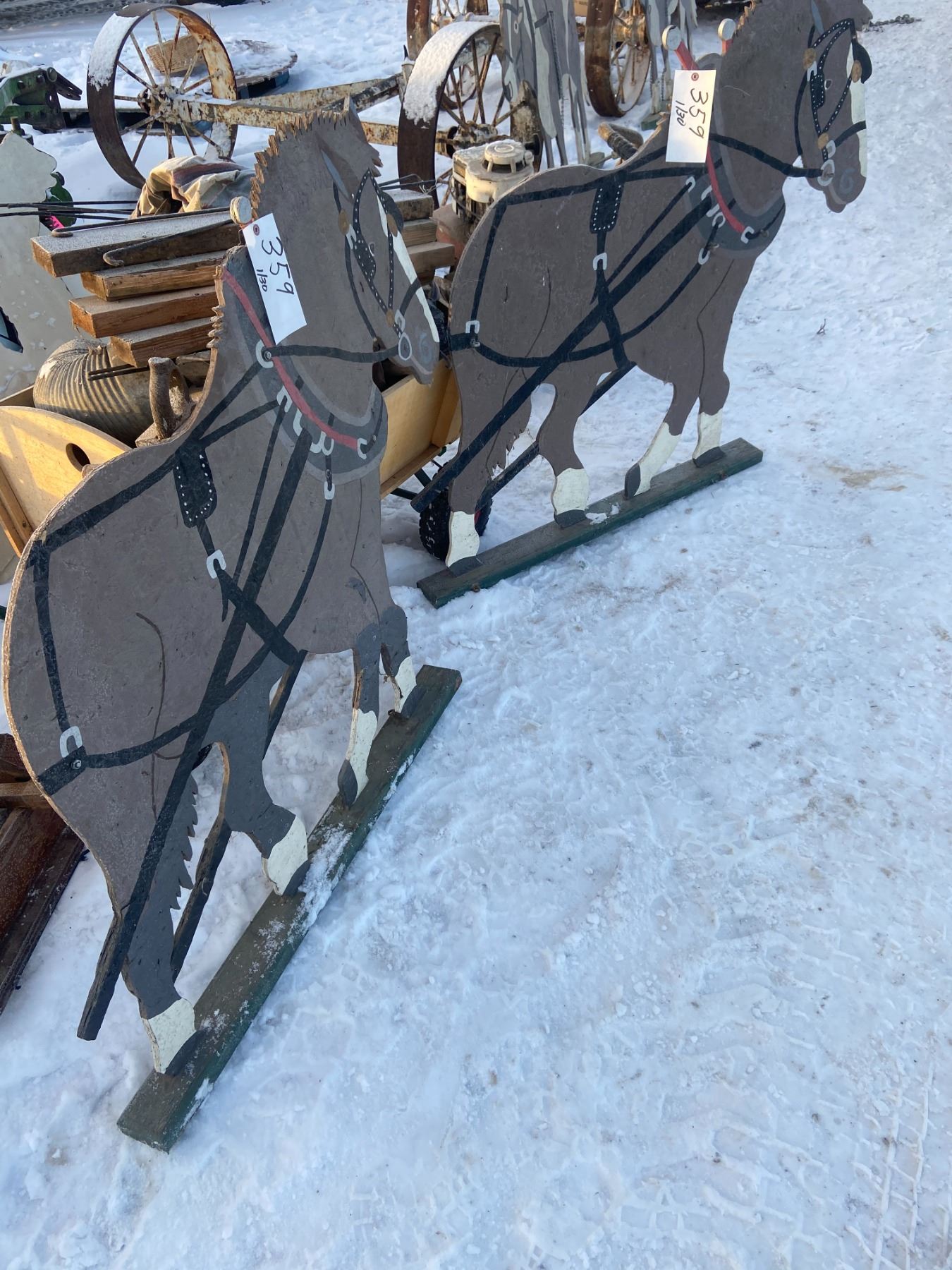 2 WOODEN CUT OUT HEAVY HORSE TEAM, 46"L, 44"T
