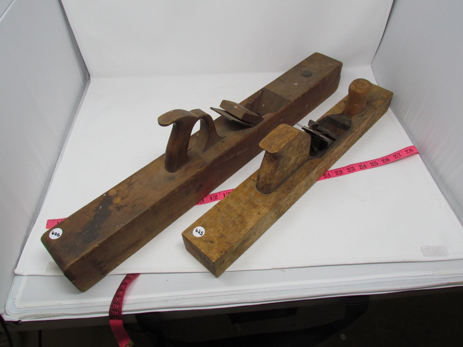 2 WOODEN WOOD PLAINS 'NATIONAL' 22" BASE & 1 28" BASE