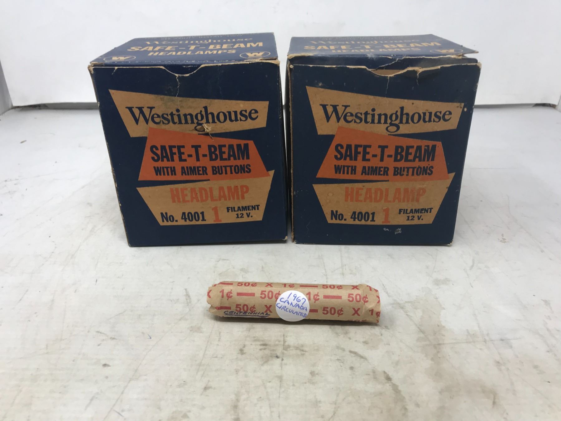 (2) Westinghouse Safe-T-Beam With Aimer Buttons Headlamp + 1967 Canada Circulated Coin Roll