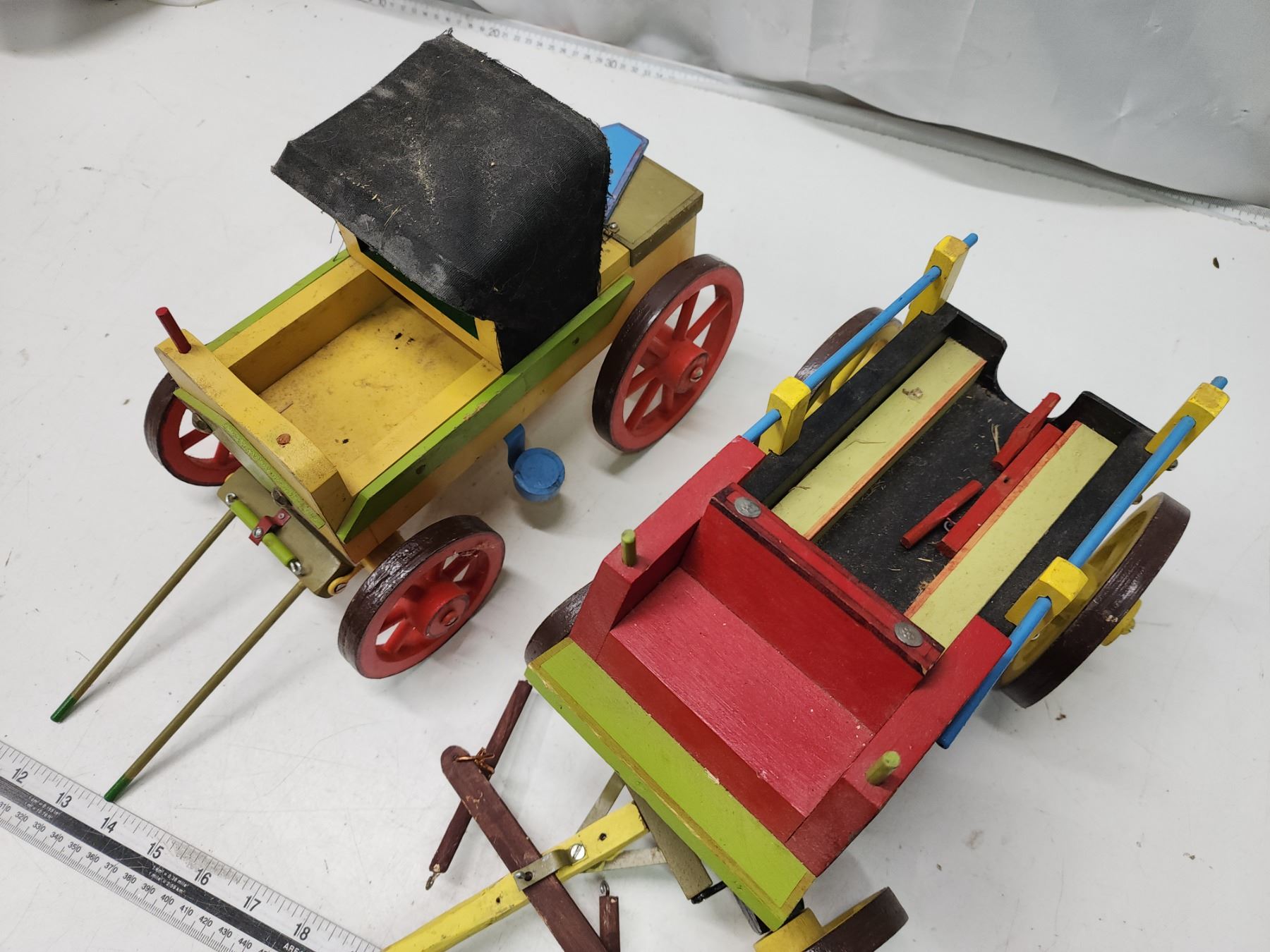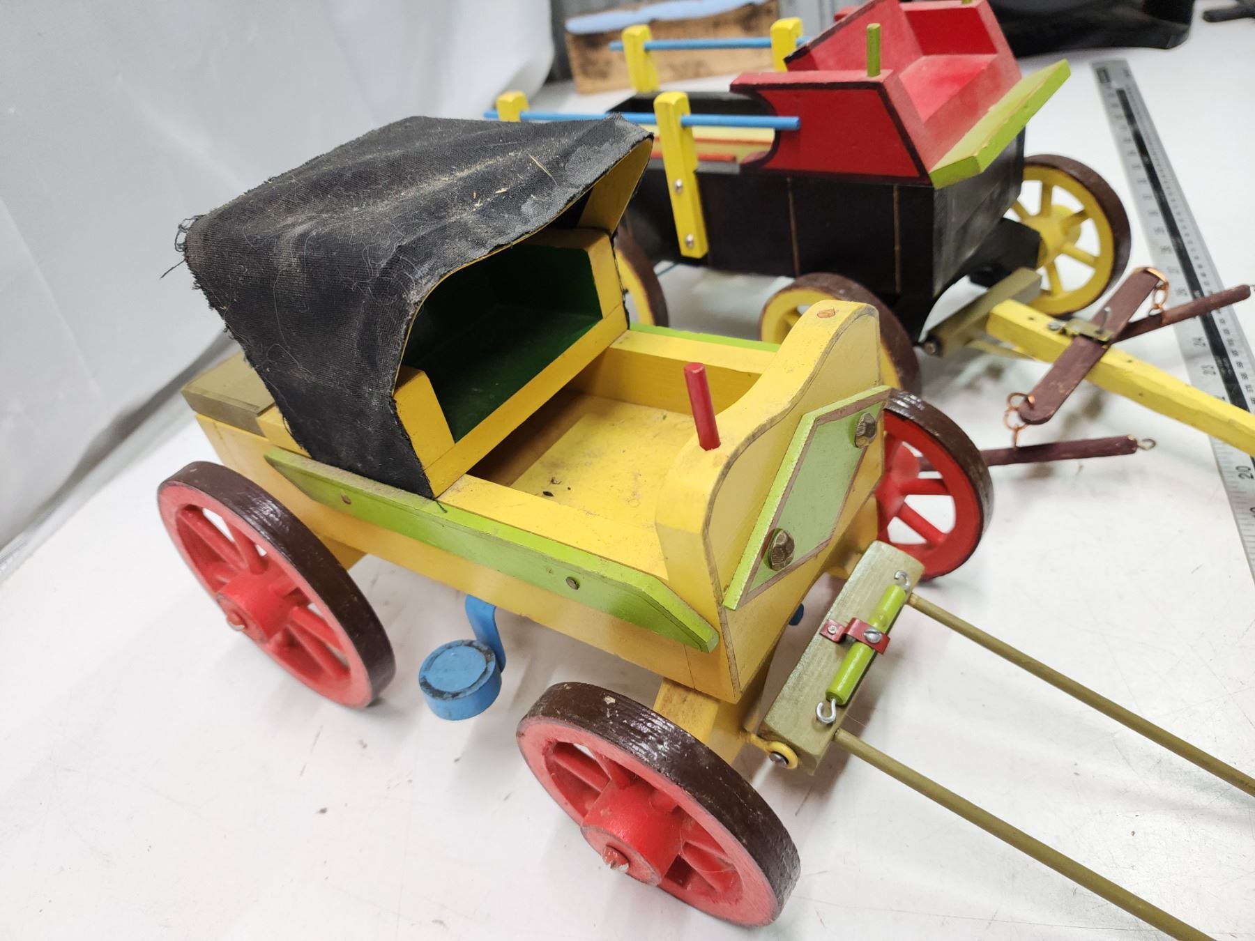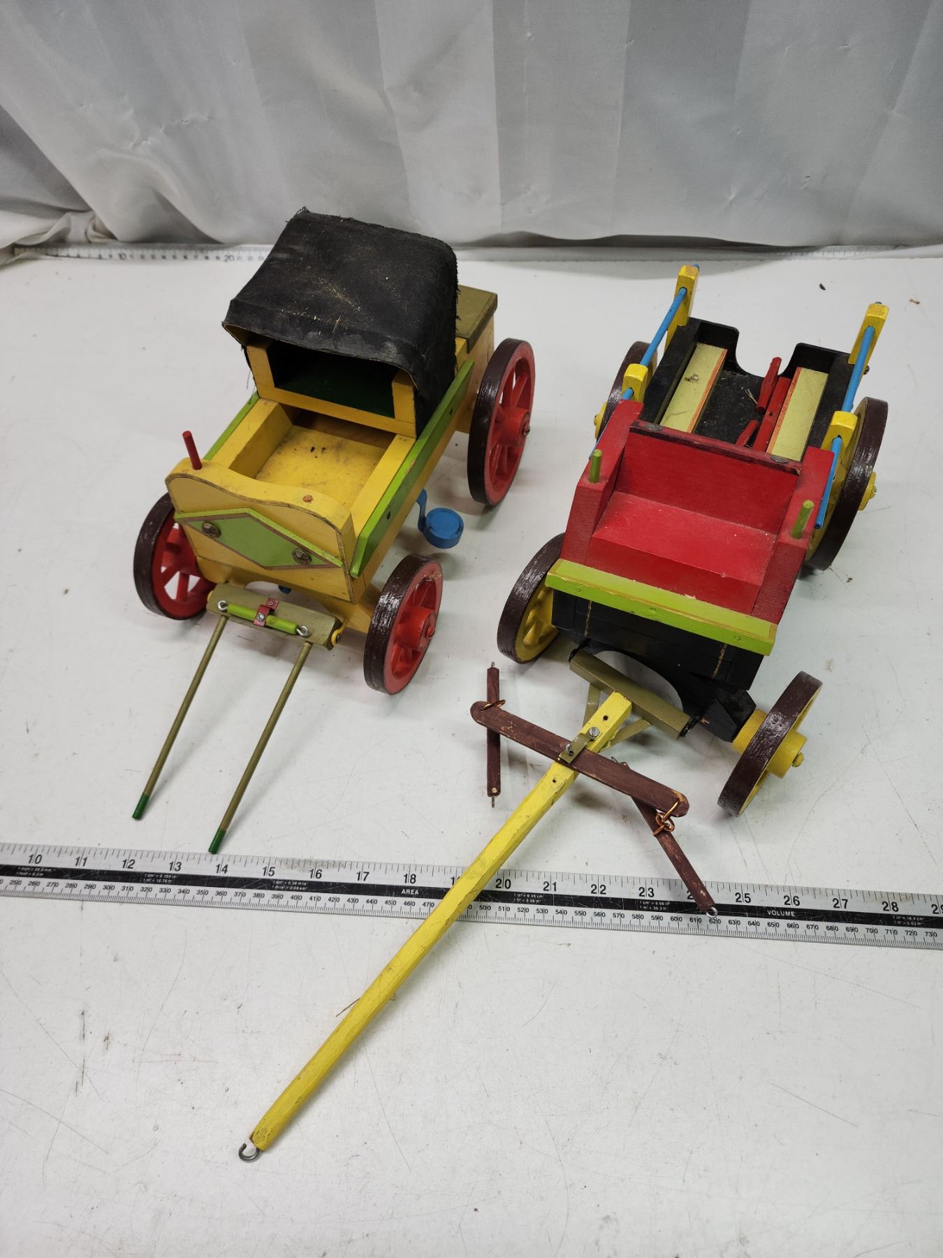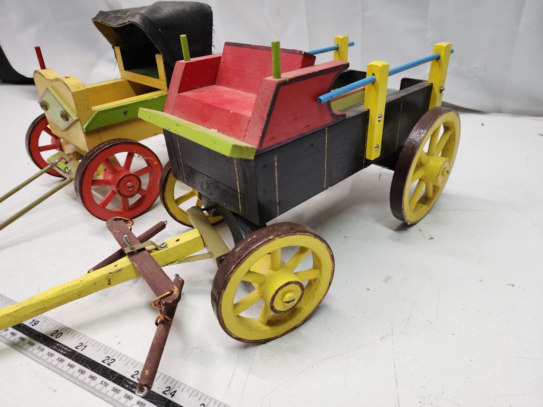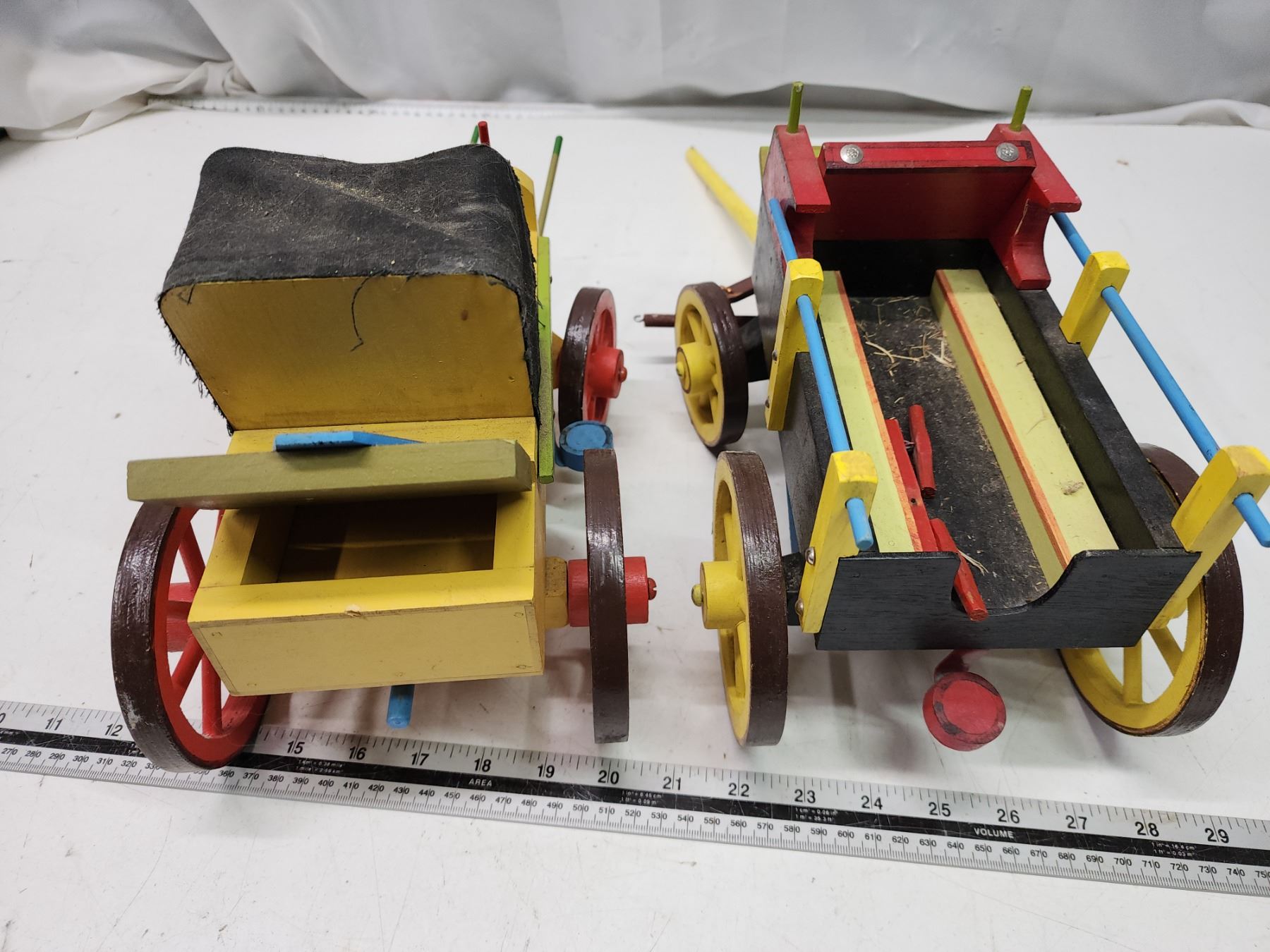 2 Wooden wagons - 1 yellow & 1 black