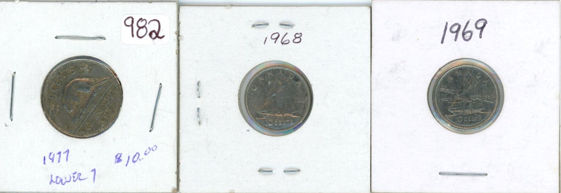 2 X 10¢ (1968 & 1969) & 1 5¢ 1977 lower 7