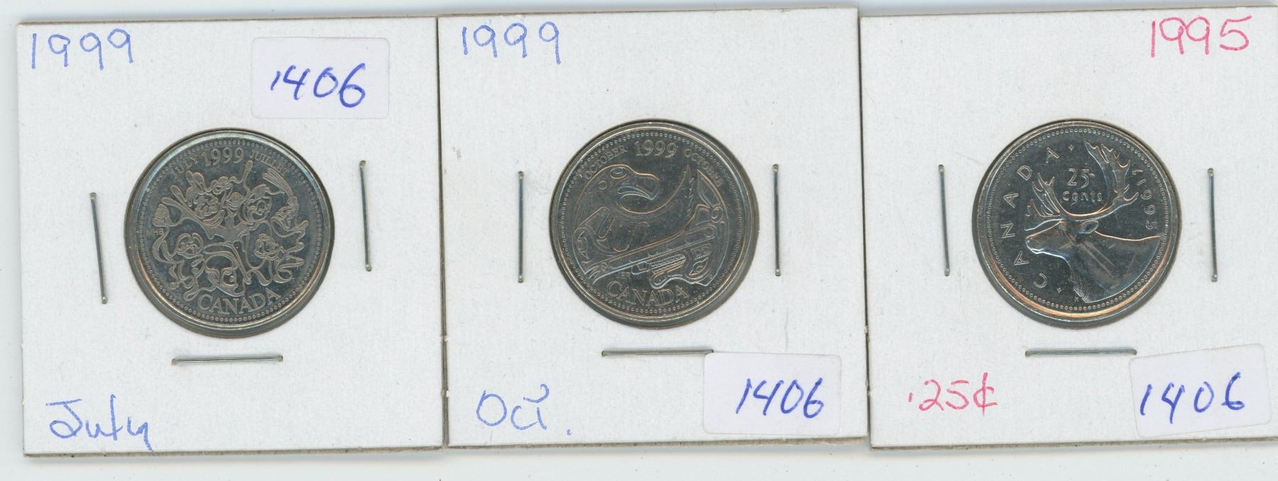 2 X 1999 & 1995 Canadian 25 Cent Coins