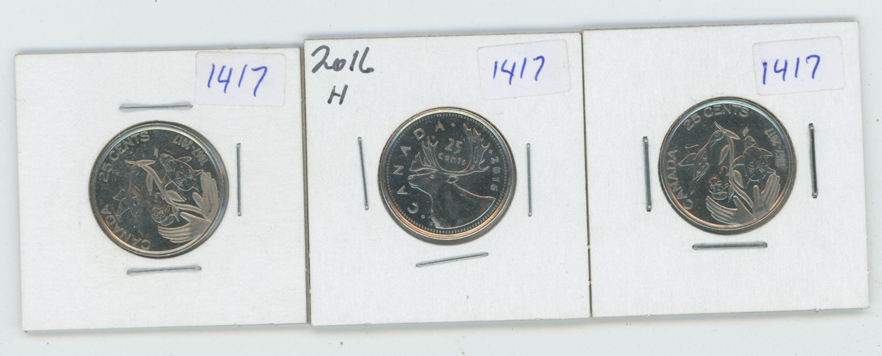 2 X 2017 & 2016 Canadian 25 Cent Coins