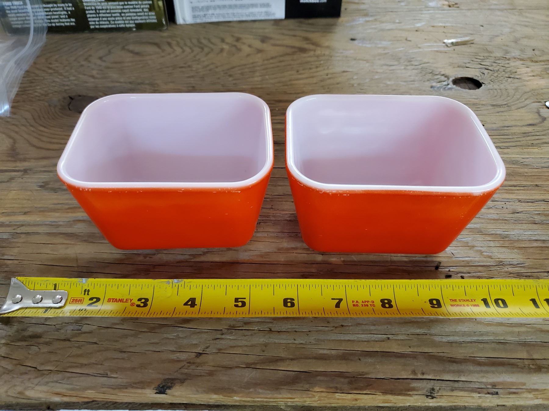 2 X VINTAGE ORANGE PYREX FRIDGE BOWLS
