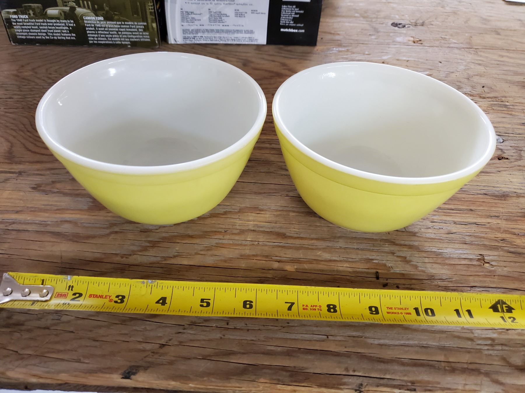 2 X VINTAGE YELLOW PYREX MIXING BOWLS