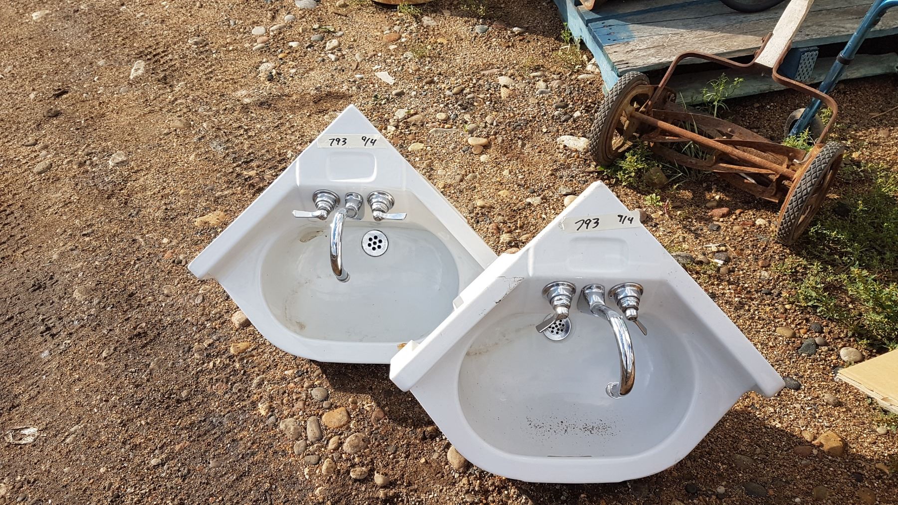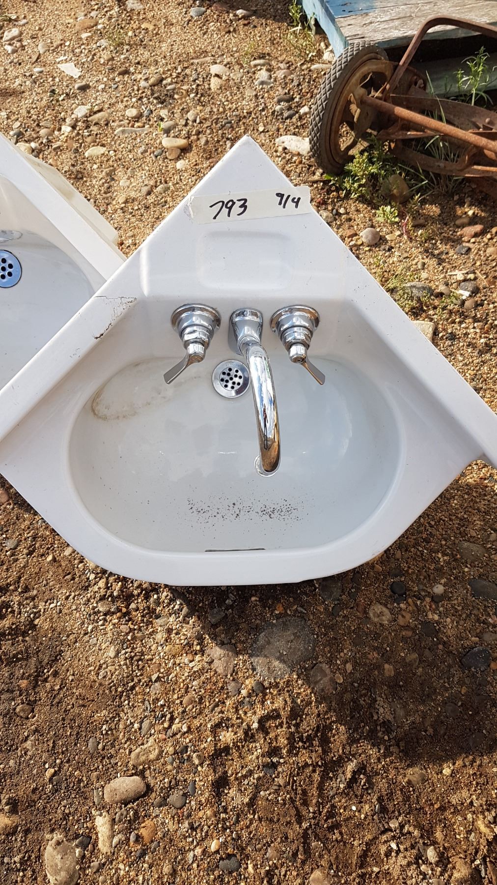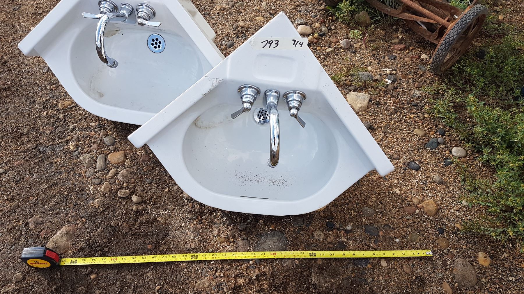 2 X White Corner Sinks With Taps