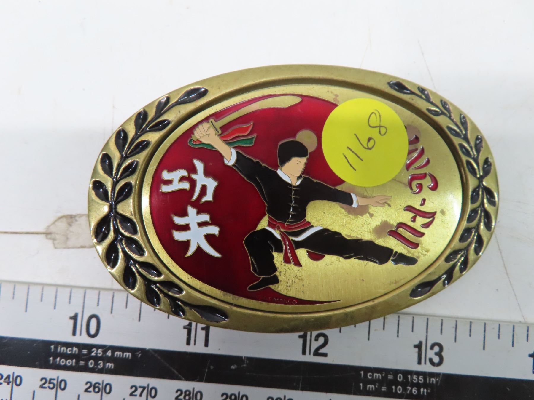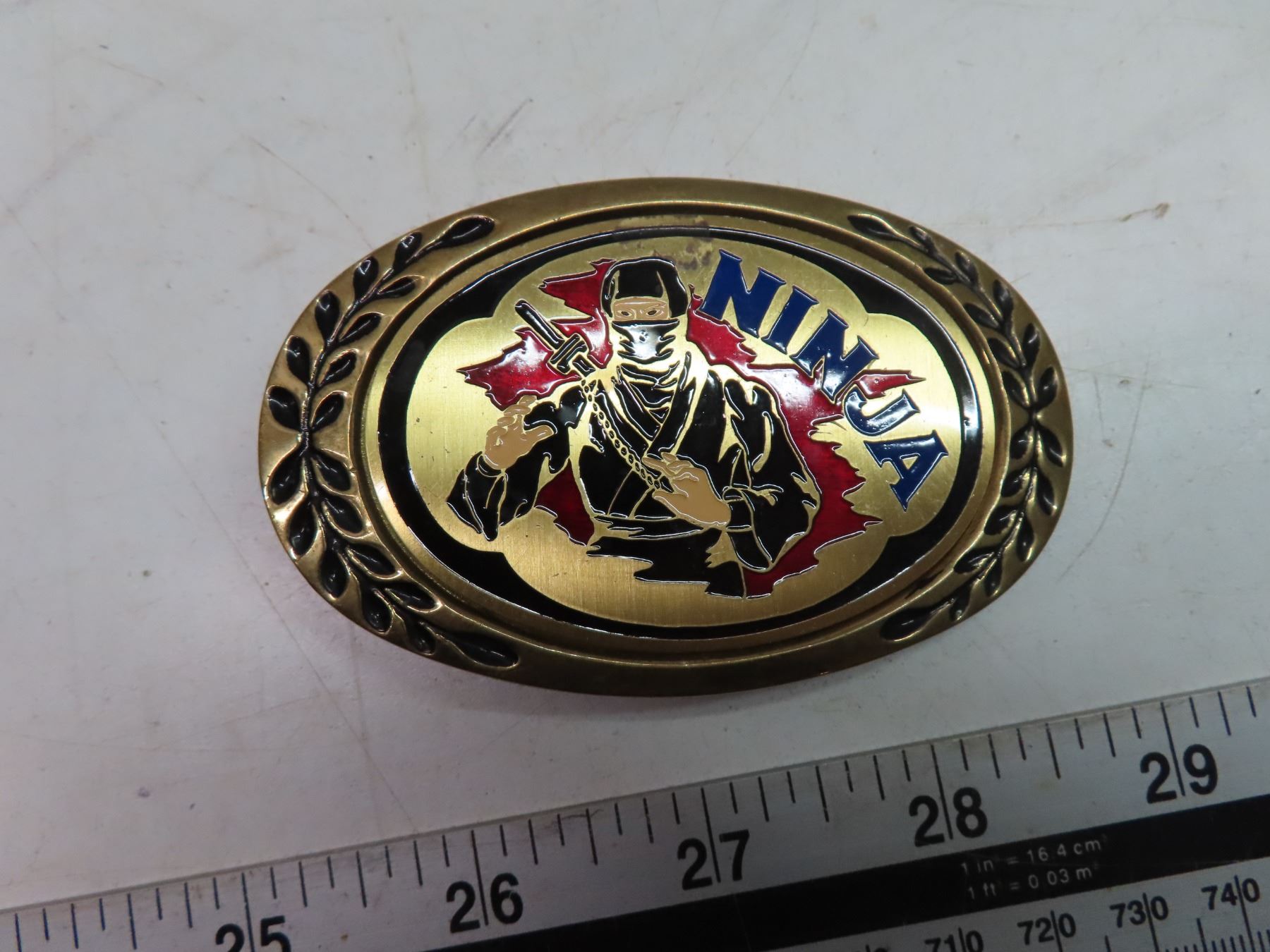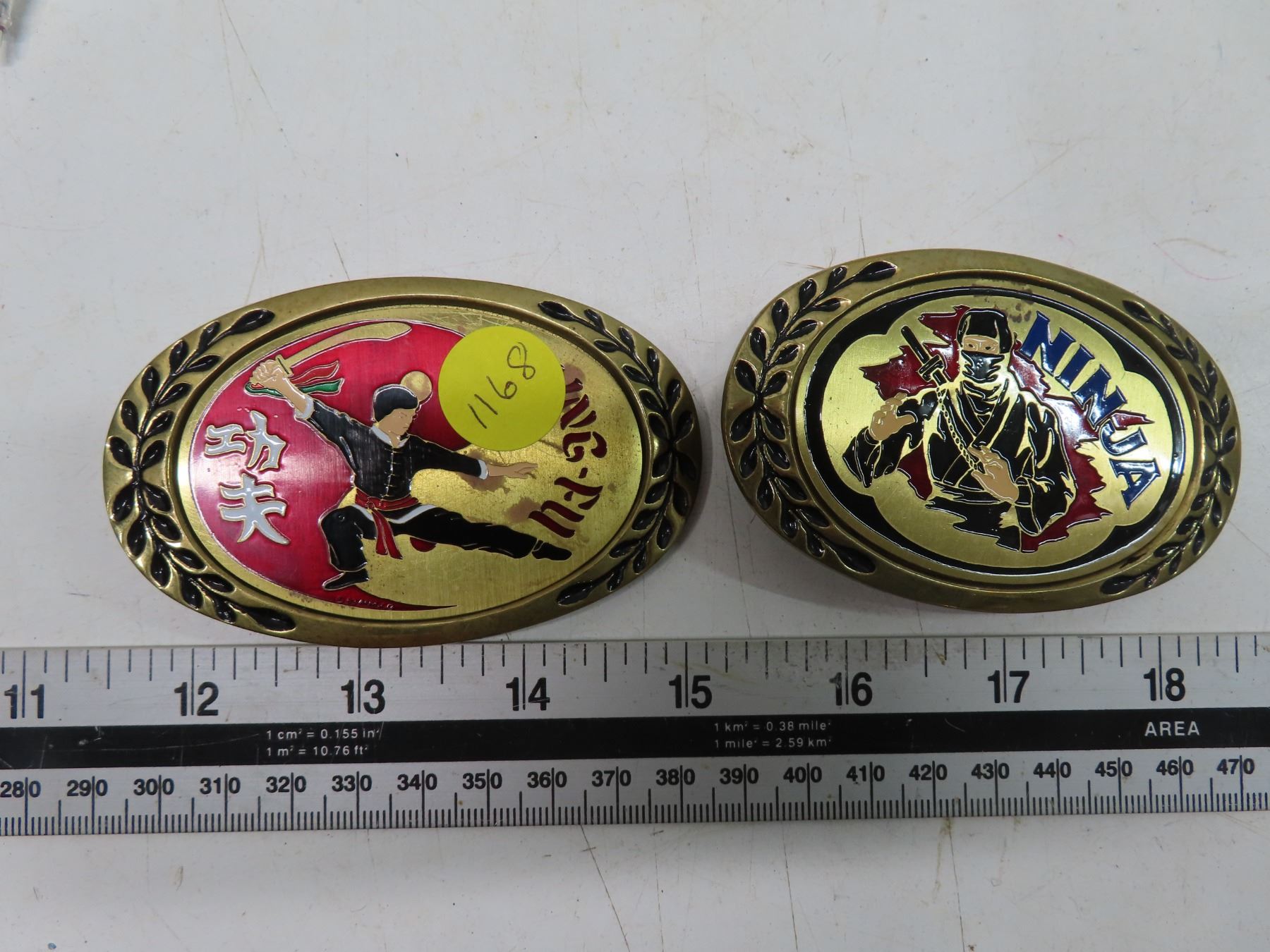 2 belt buckles- ninja+ kung.fu brass