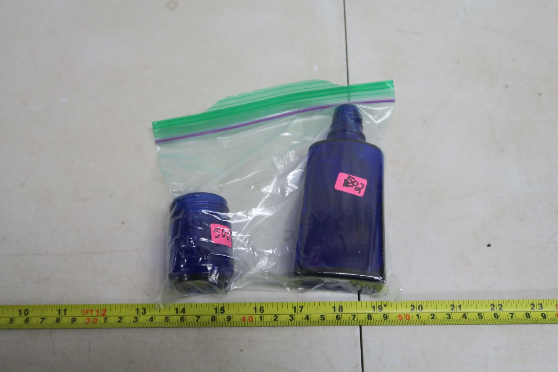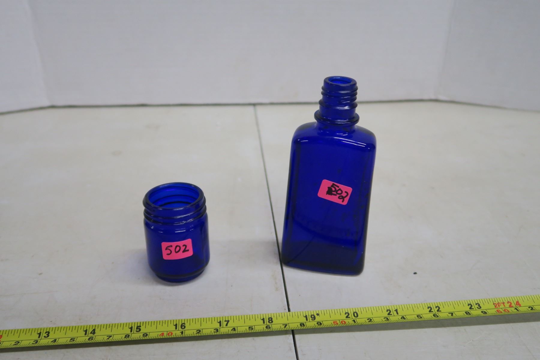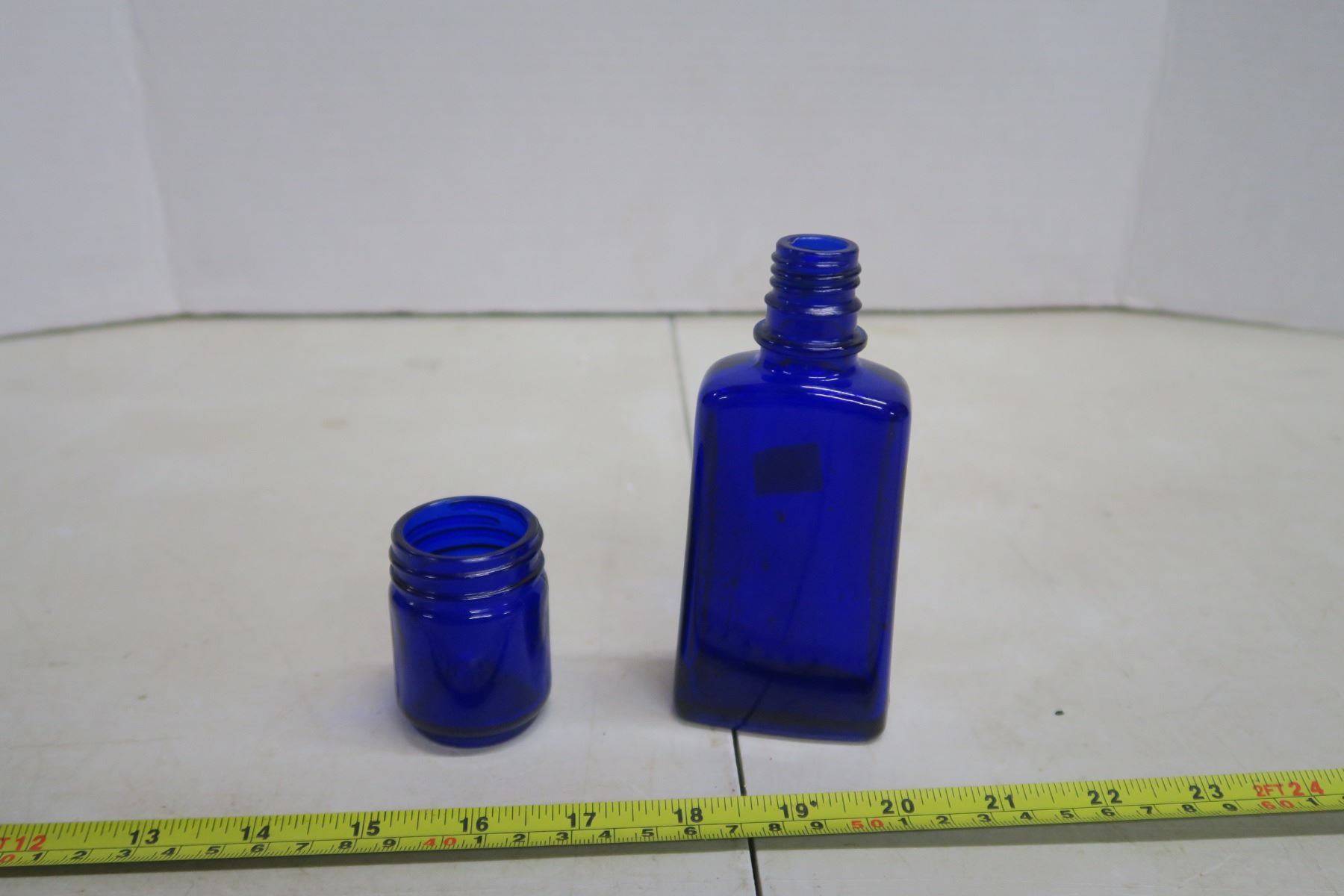 2 blue glass container