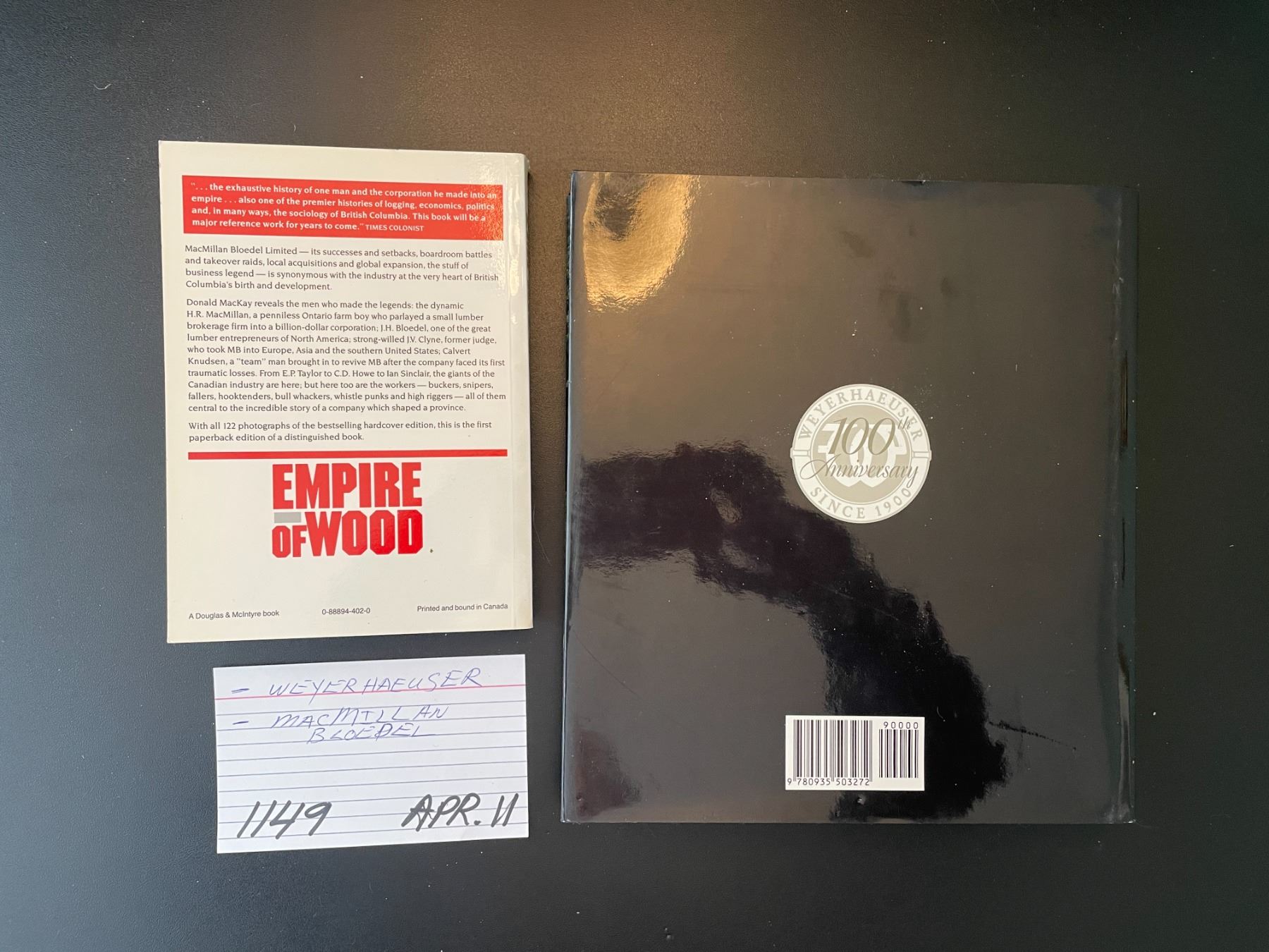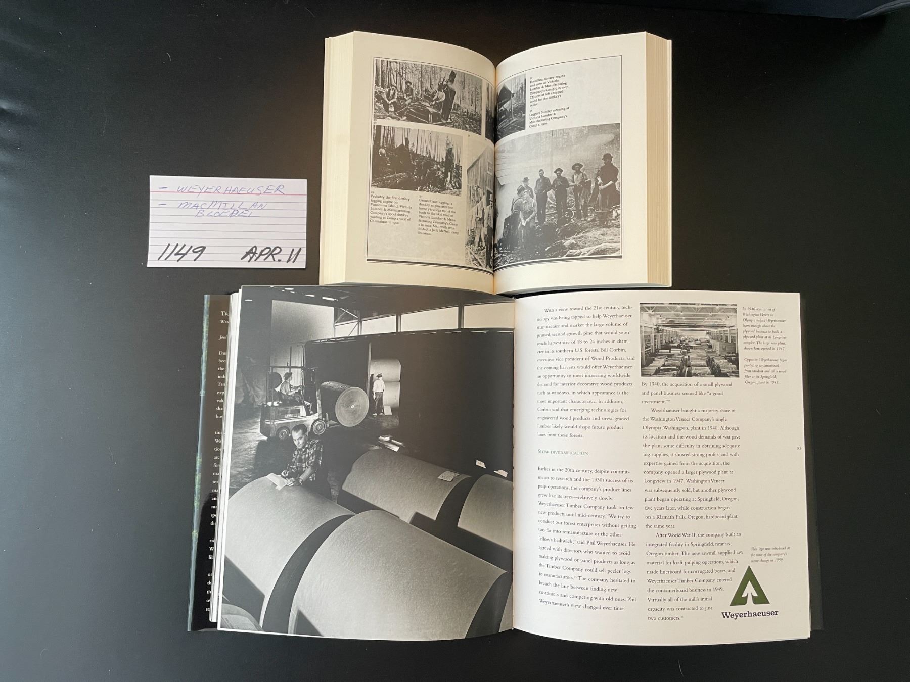 2 books - Weyerhaeuser's First 100 Years - MacMillan Bloedel Story