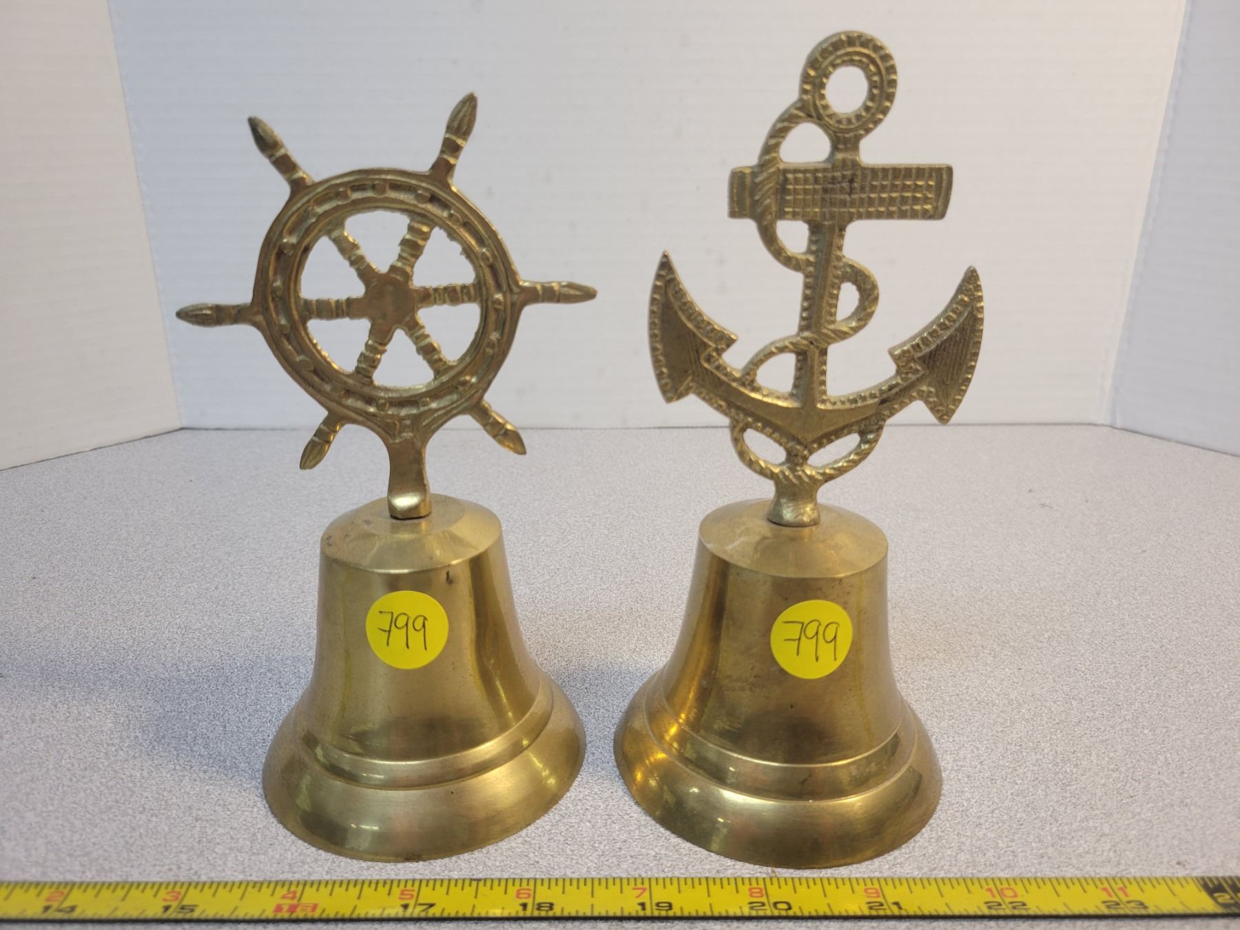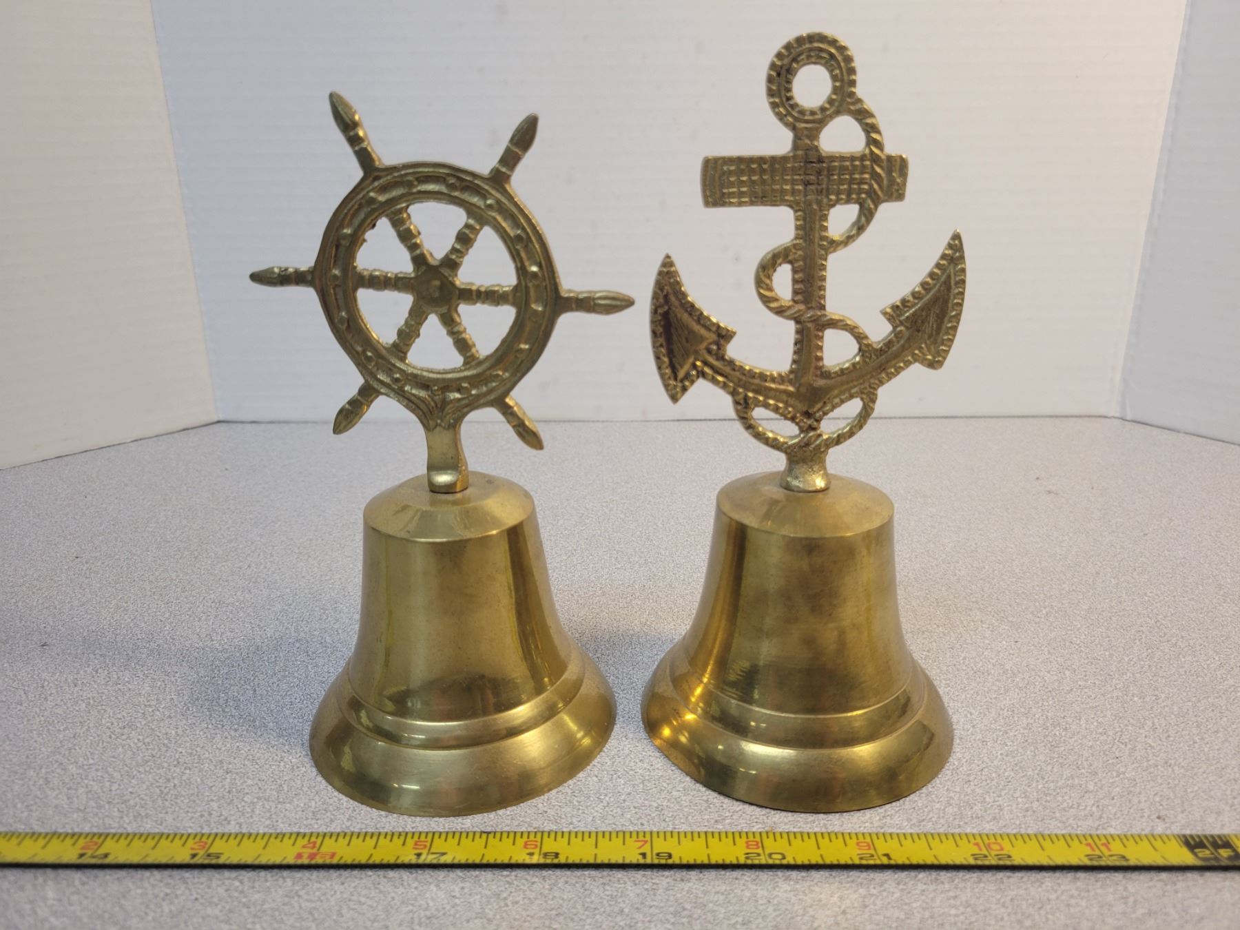2 brass bells ship/anchor 7" tall