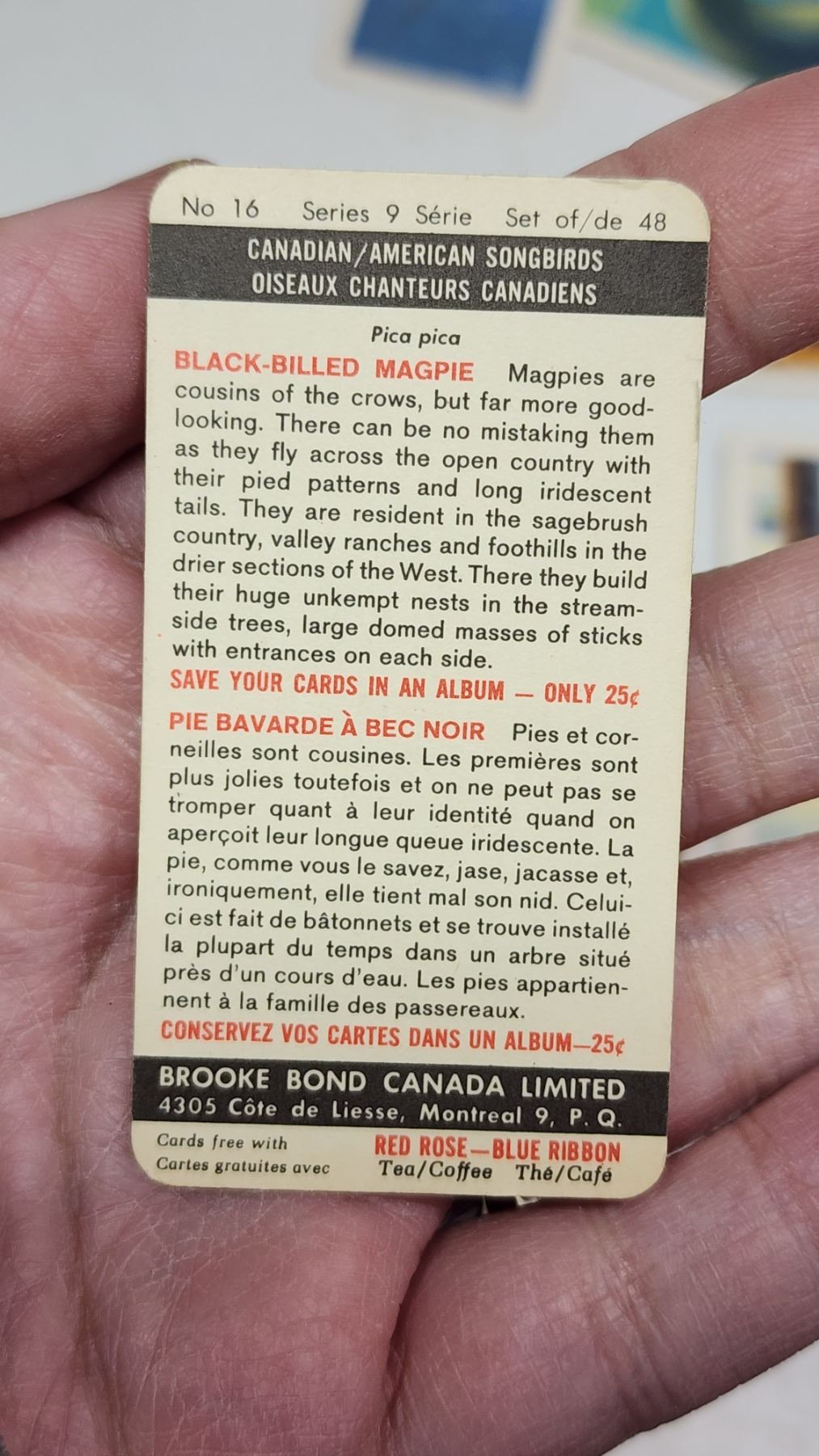 2 bundles of Collector's art cards - Came free with Red Rose/Blue Ribbon coffee or tea - "Transportation through the ages" & "Canada/USA songbirds/North American wildlife in danger"