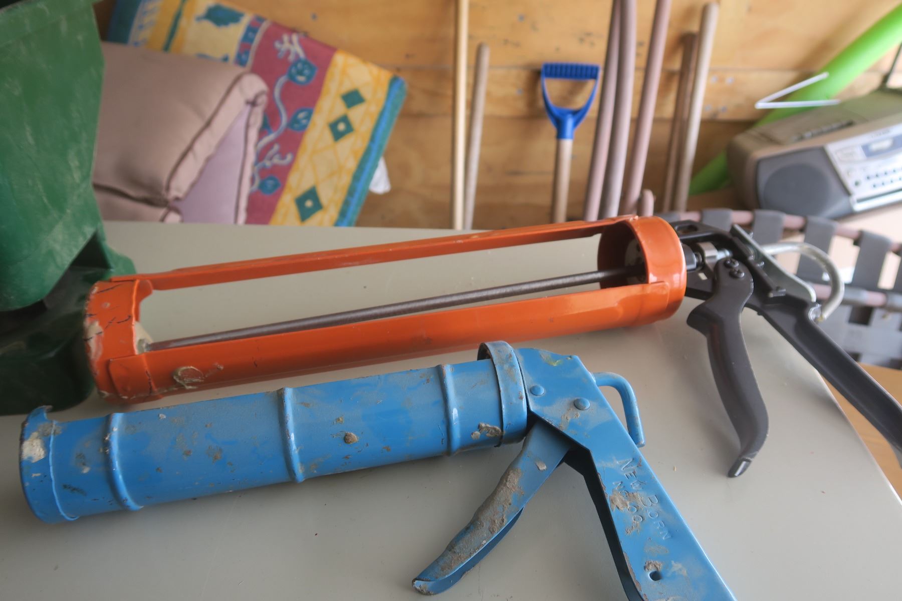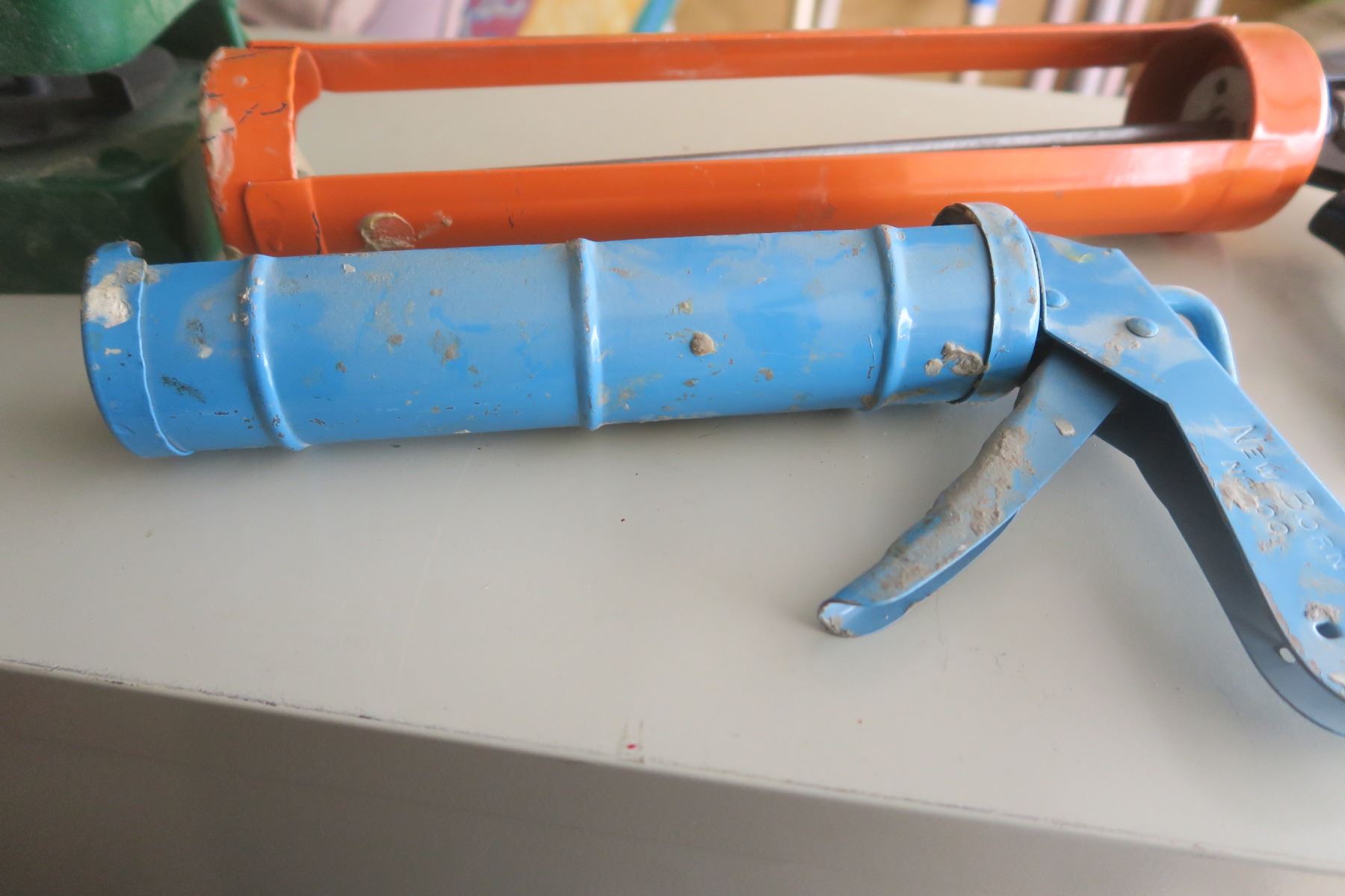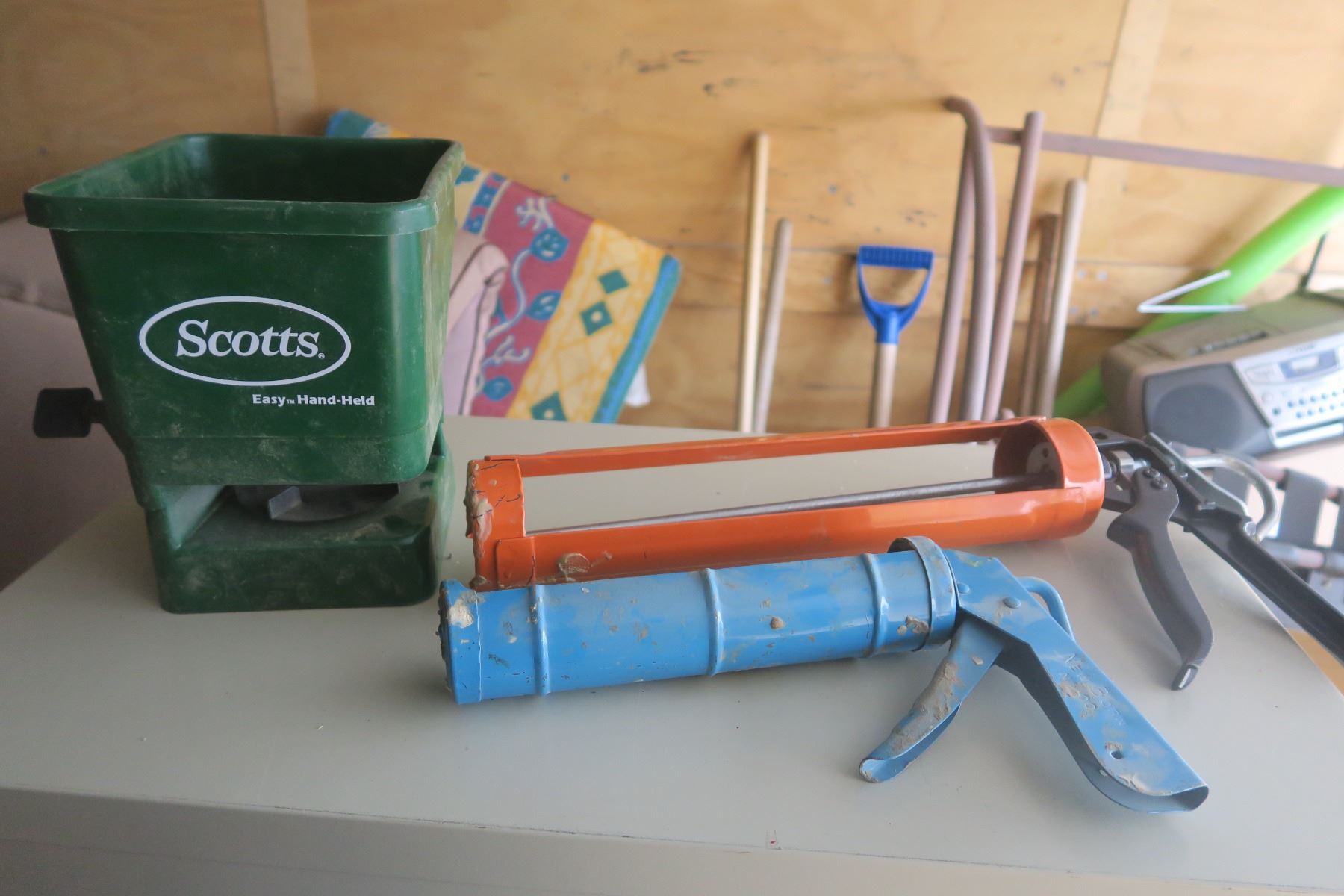 2 - caulking guns & hand held grass seed spreader