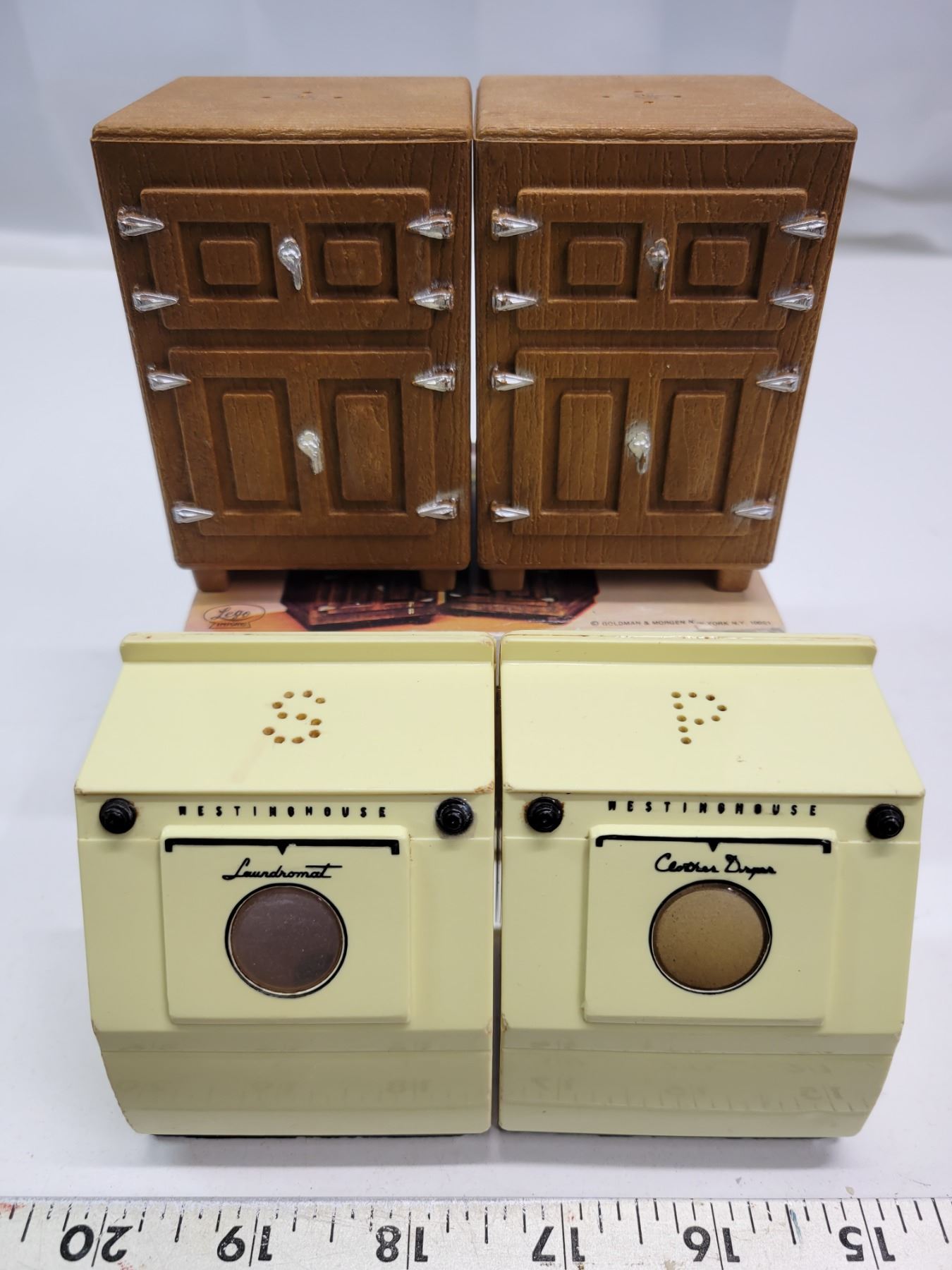 2 collectible sets S & P Shakers Westinghouse Washer/Dryer 1950; Iceboxes 1950's