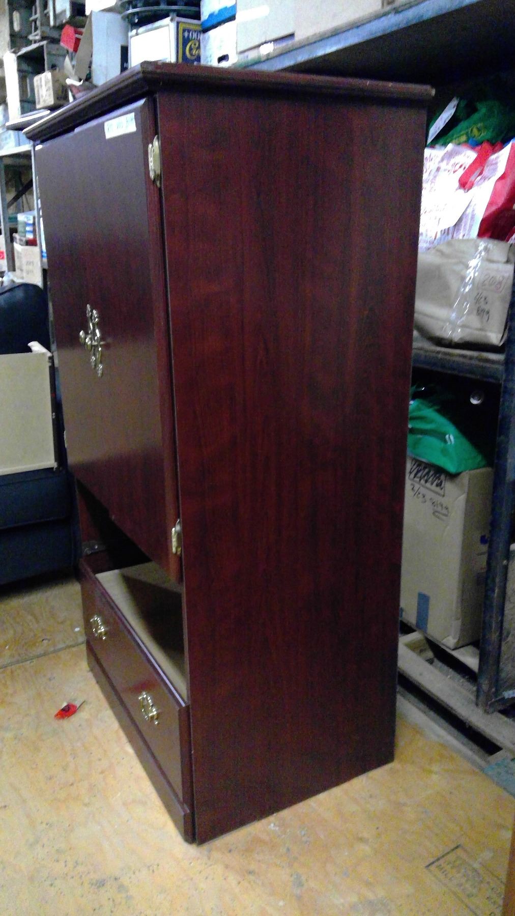 2 drawer 2 door dresser 31"x21"x55 1/2", 2 shelves ( 1 broken drawer)