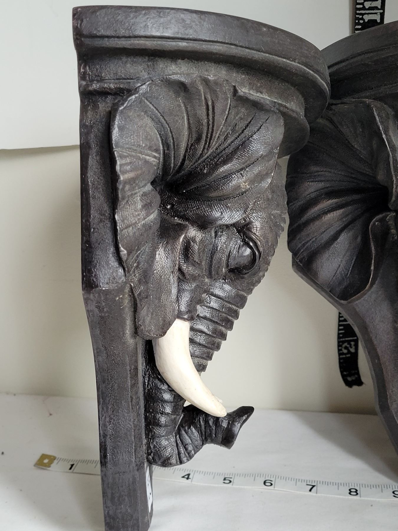 2 elephant head wall shelves.