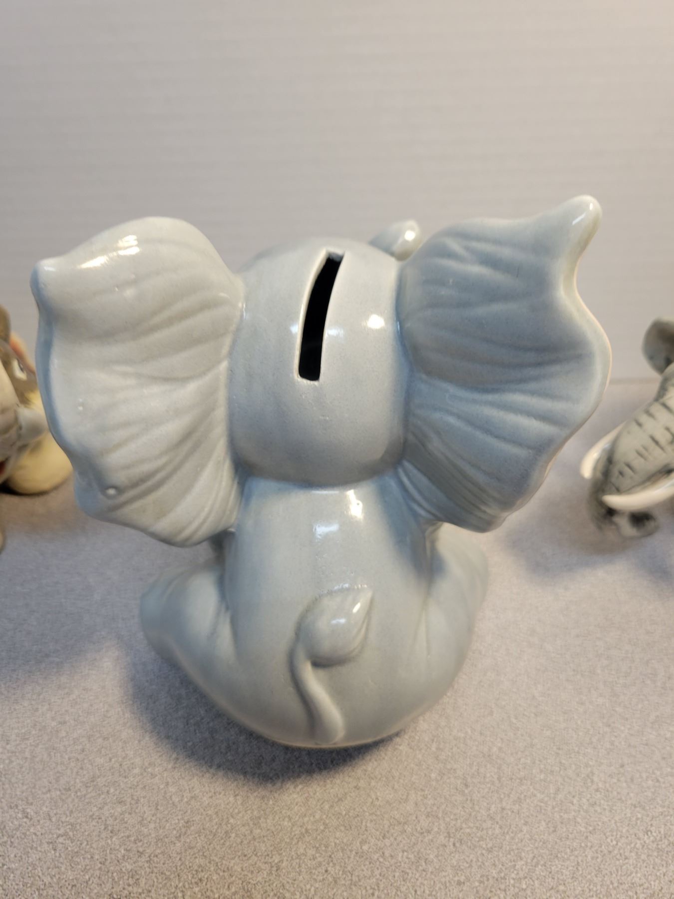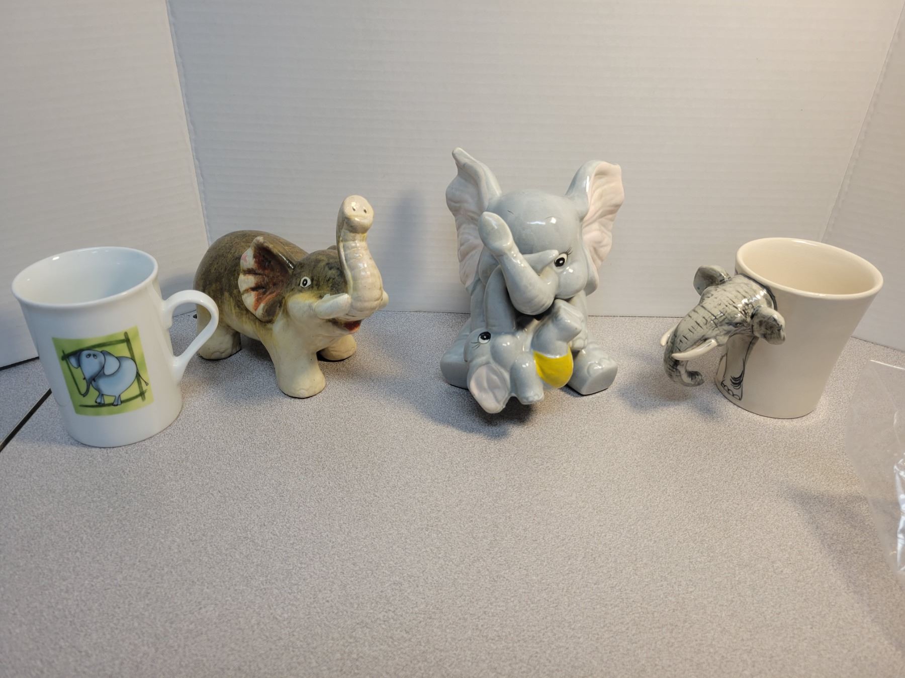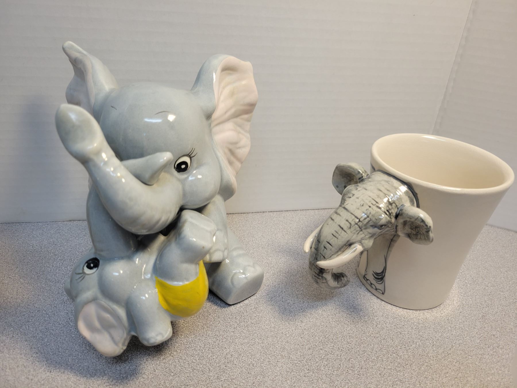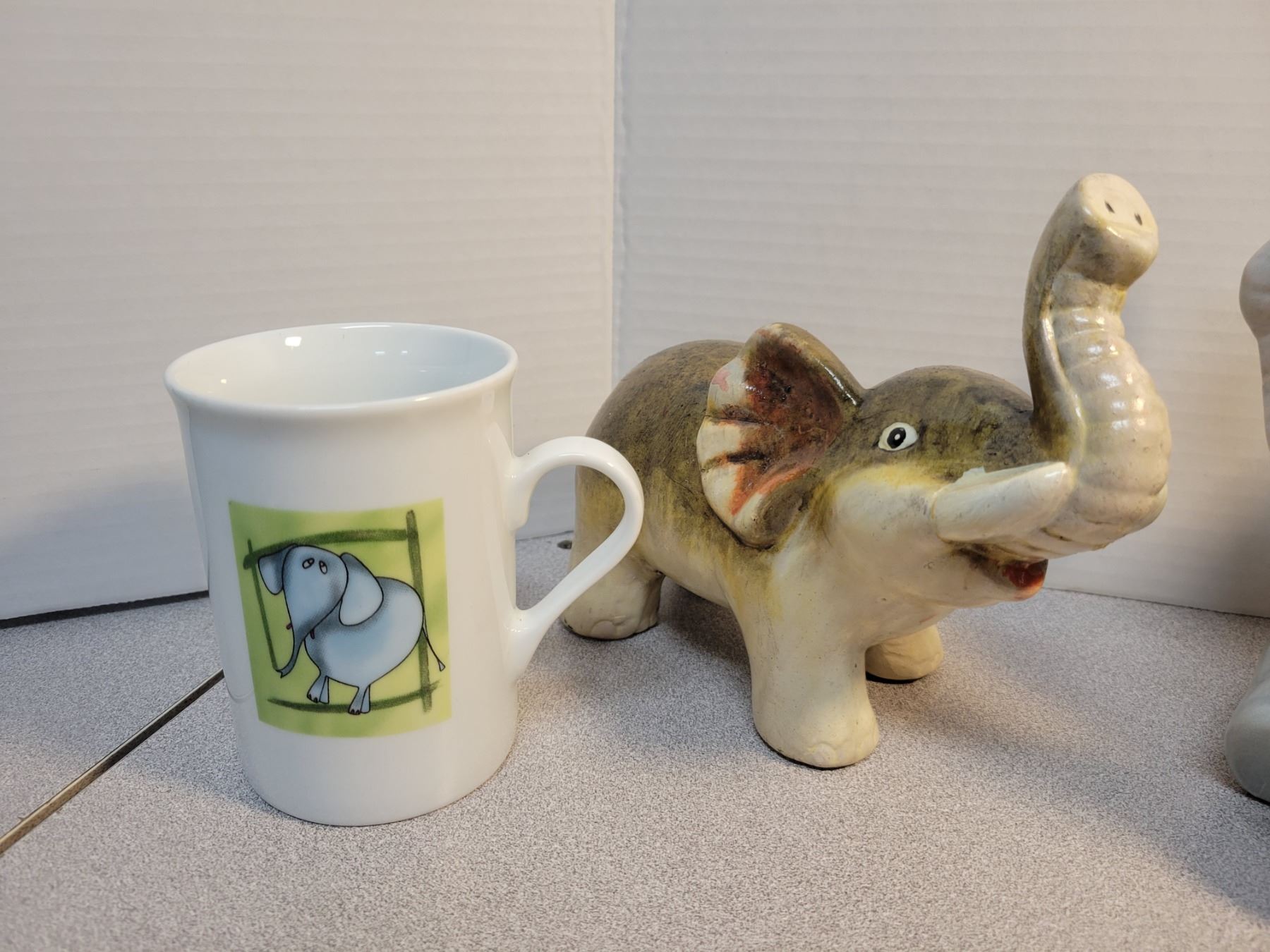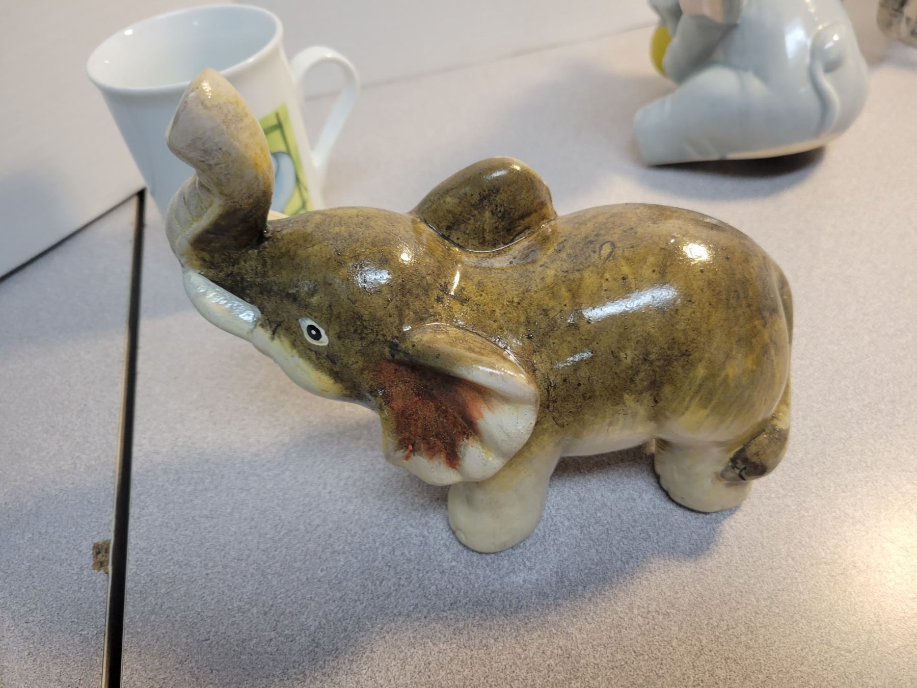 2 elephant mugs, 2 ceramic (one piggy bank)