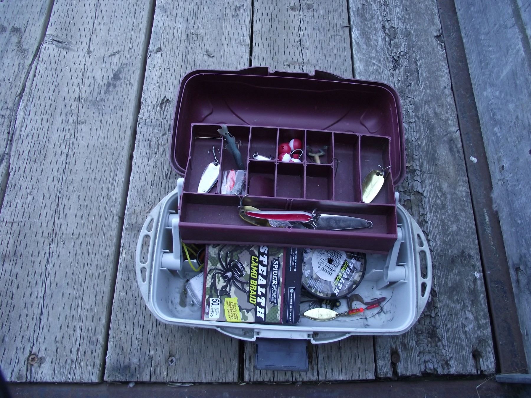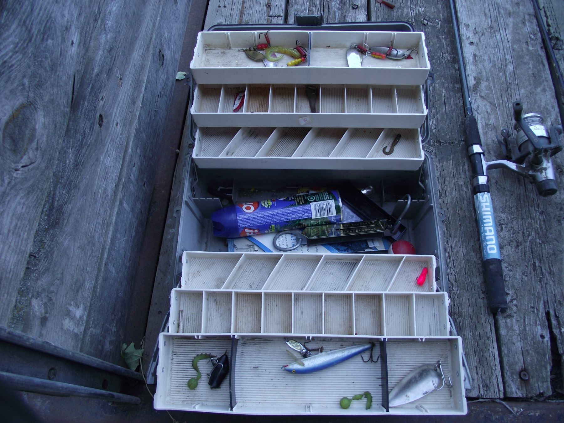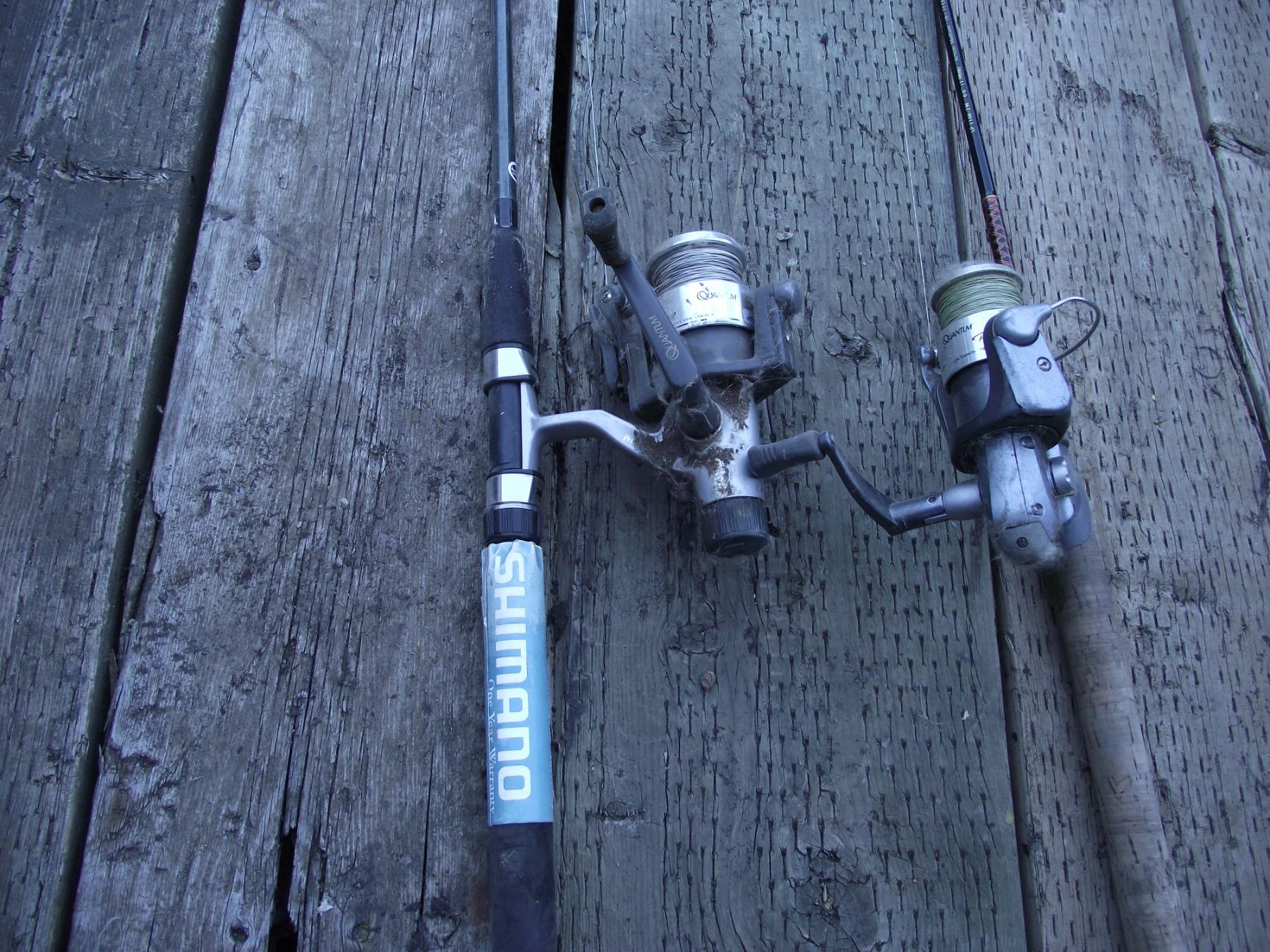 2- fishing poles w/ quantam reels and line, 2-tackle boxes full of hooks and gear.