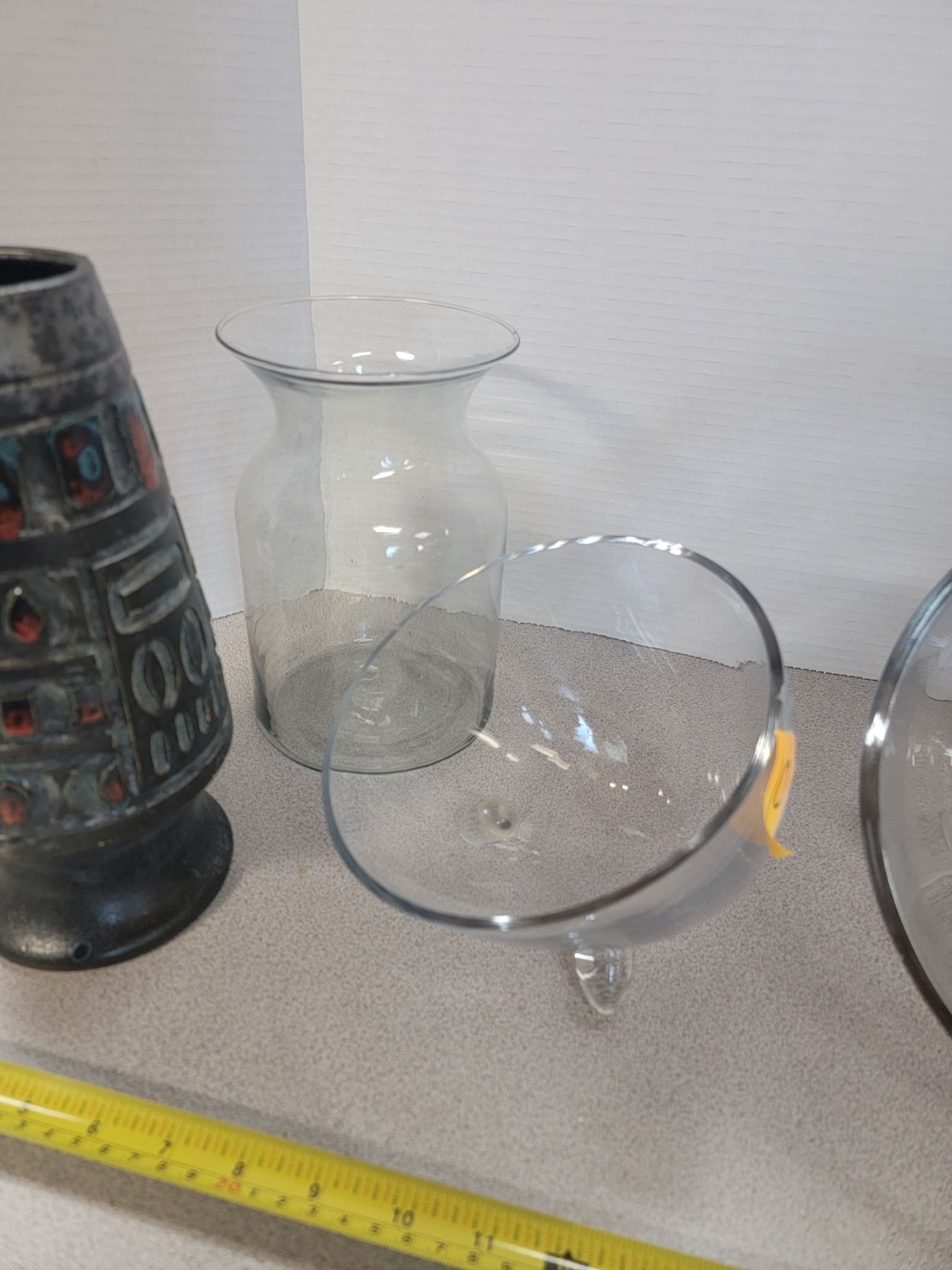 2 glass vases + 2 glass bowls (one needs foot reglued)