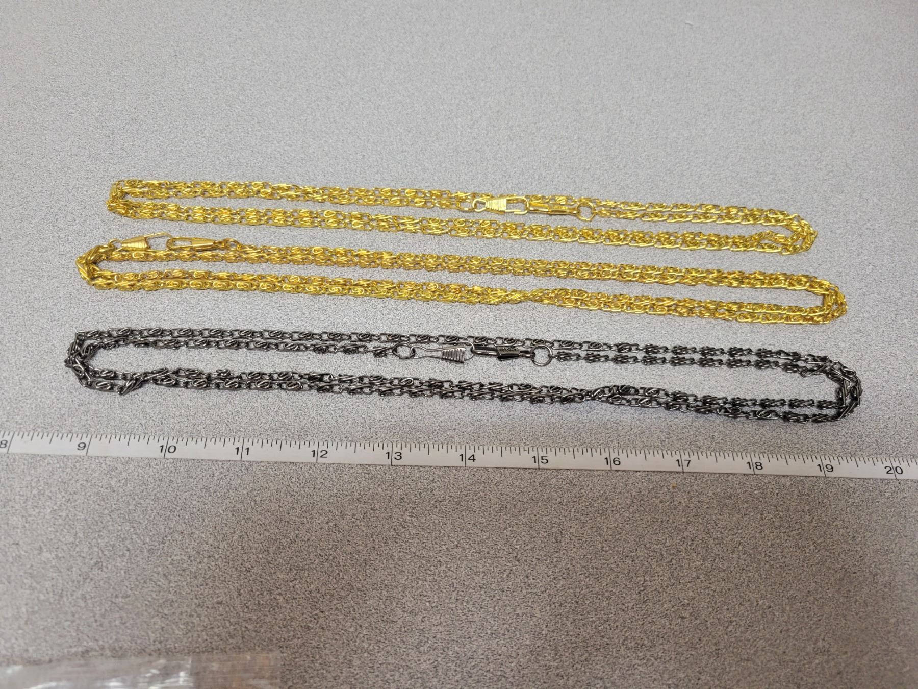 2 gold filled 23" & 1 metal gun pocket watch chains