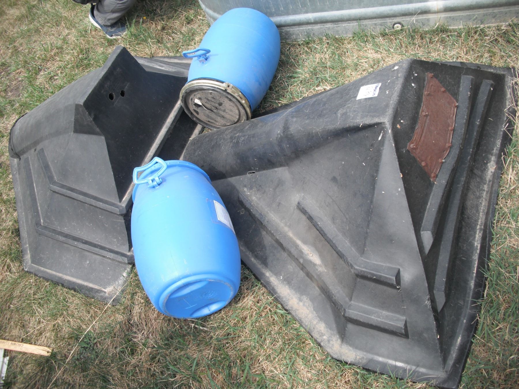 2 grain hoppers and 2 plastic storage containers