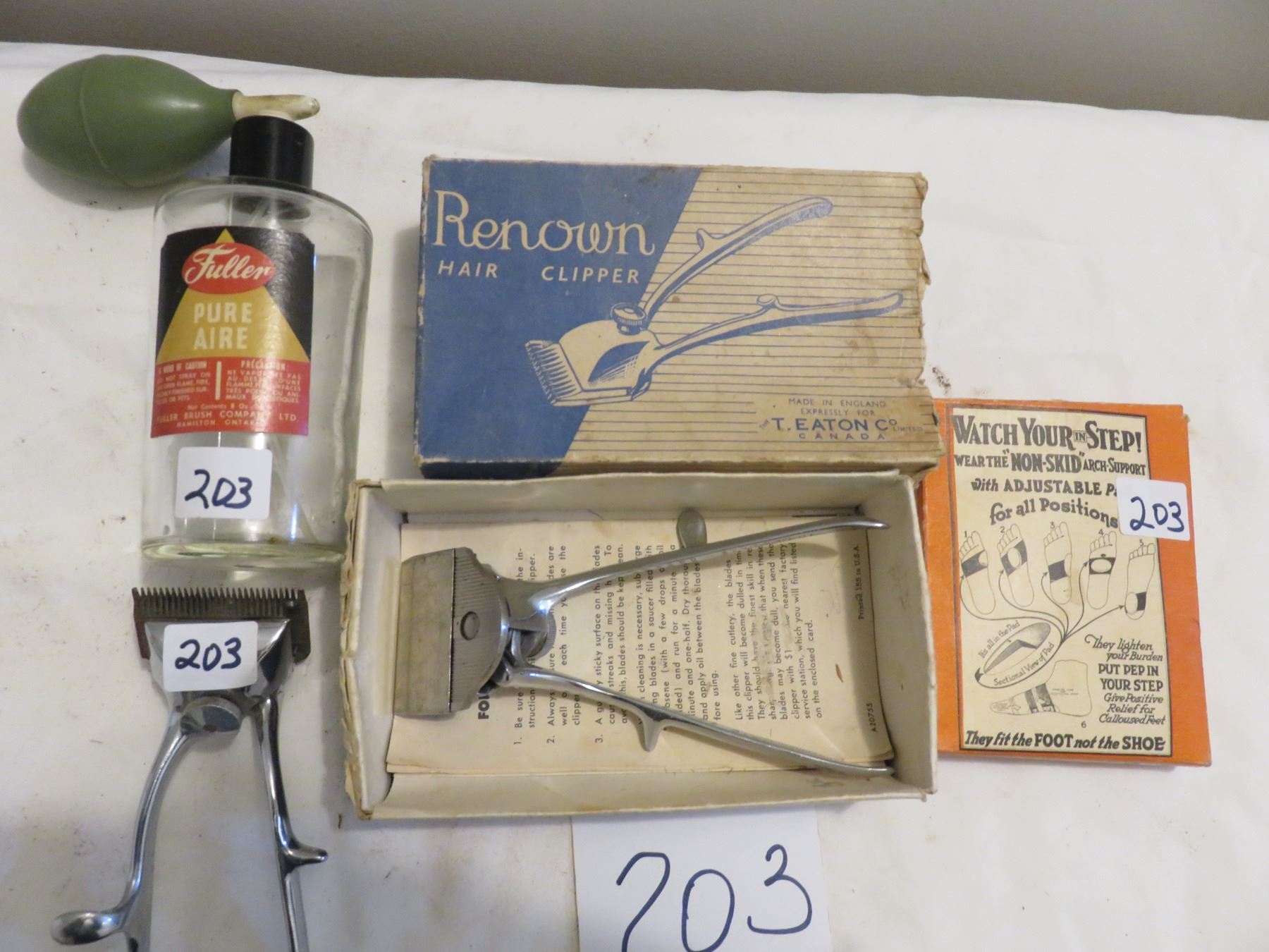 2 hair clippers, 1 Eatons, 1 old foot support - fuller atomizer
