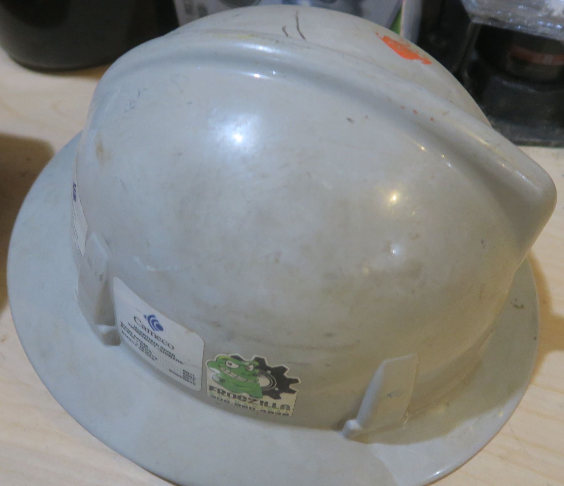 2 hard hats + oil pan