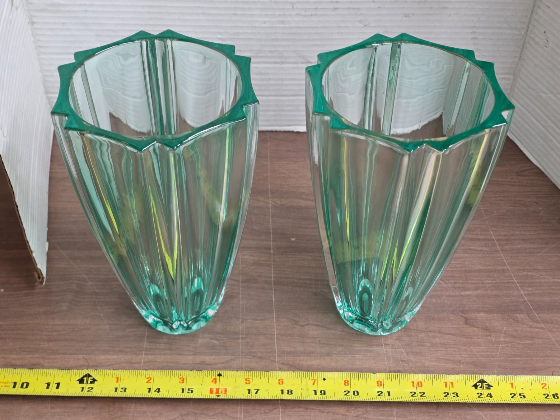 2 heavy green vases-8"H