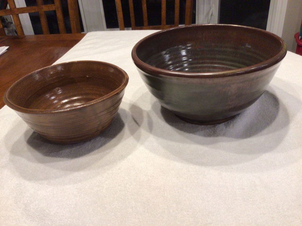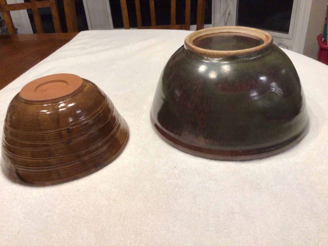 2 heavy pottery bowls
