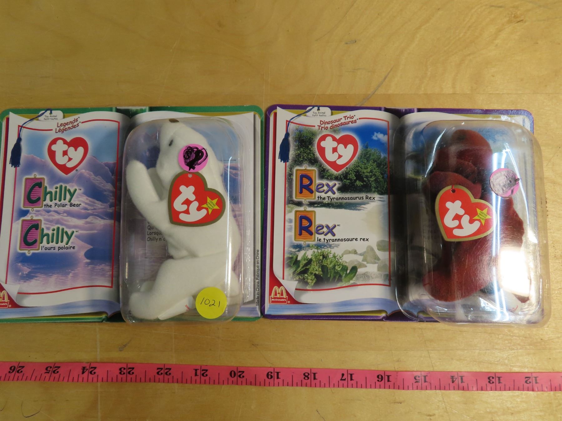 2 macdonalds TY toy animals- chilly+ rex