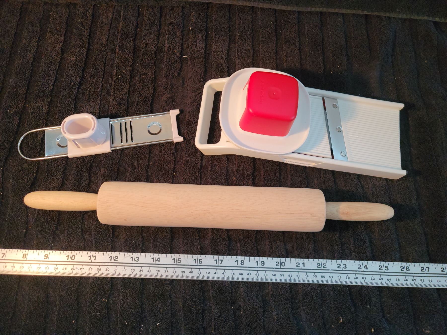 2 mandolin slicers (lrg Tupperware) and rolling pin