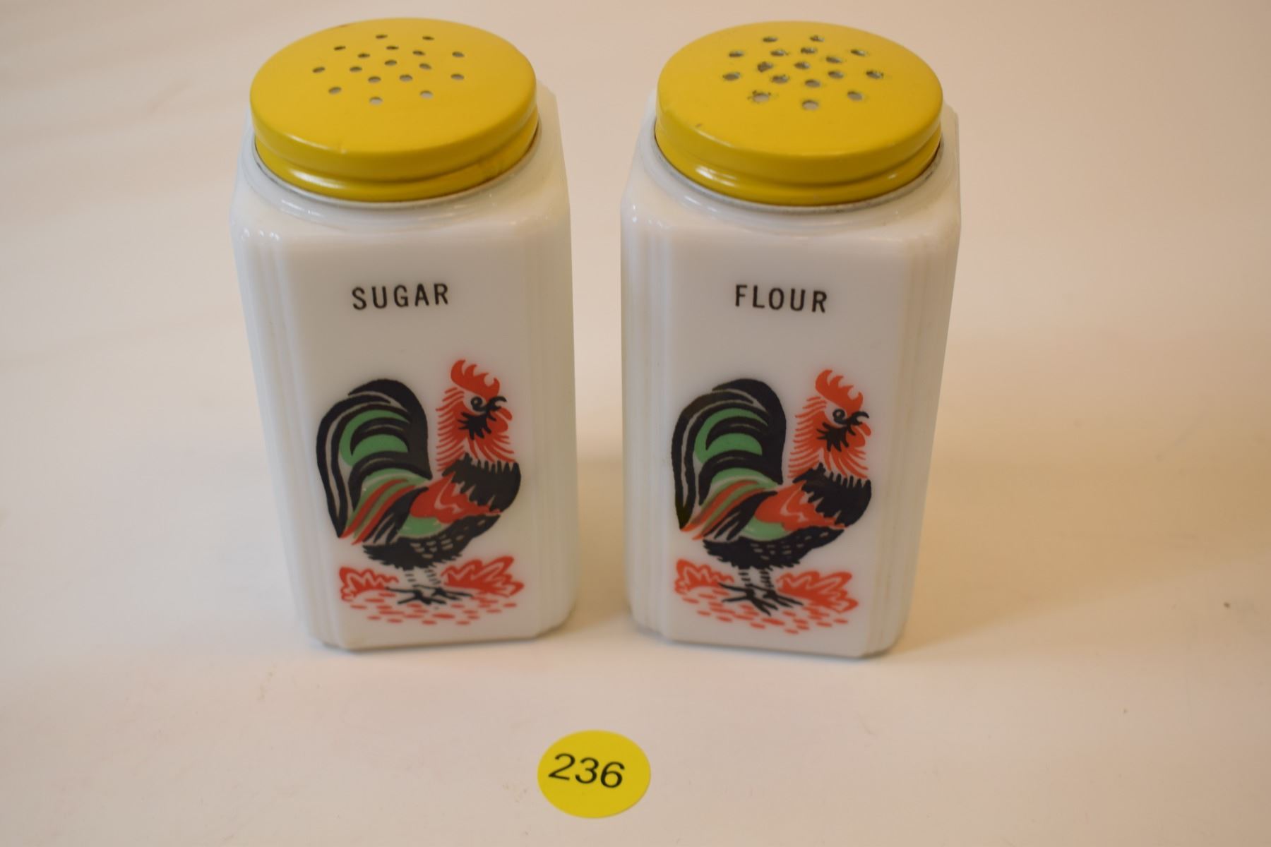 2 milk glass range shakers