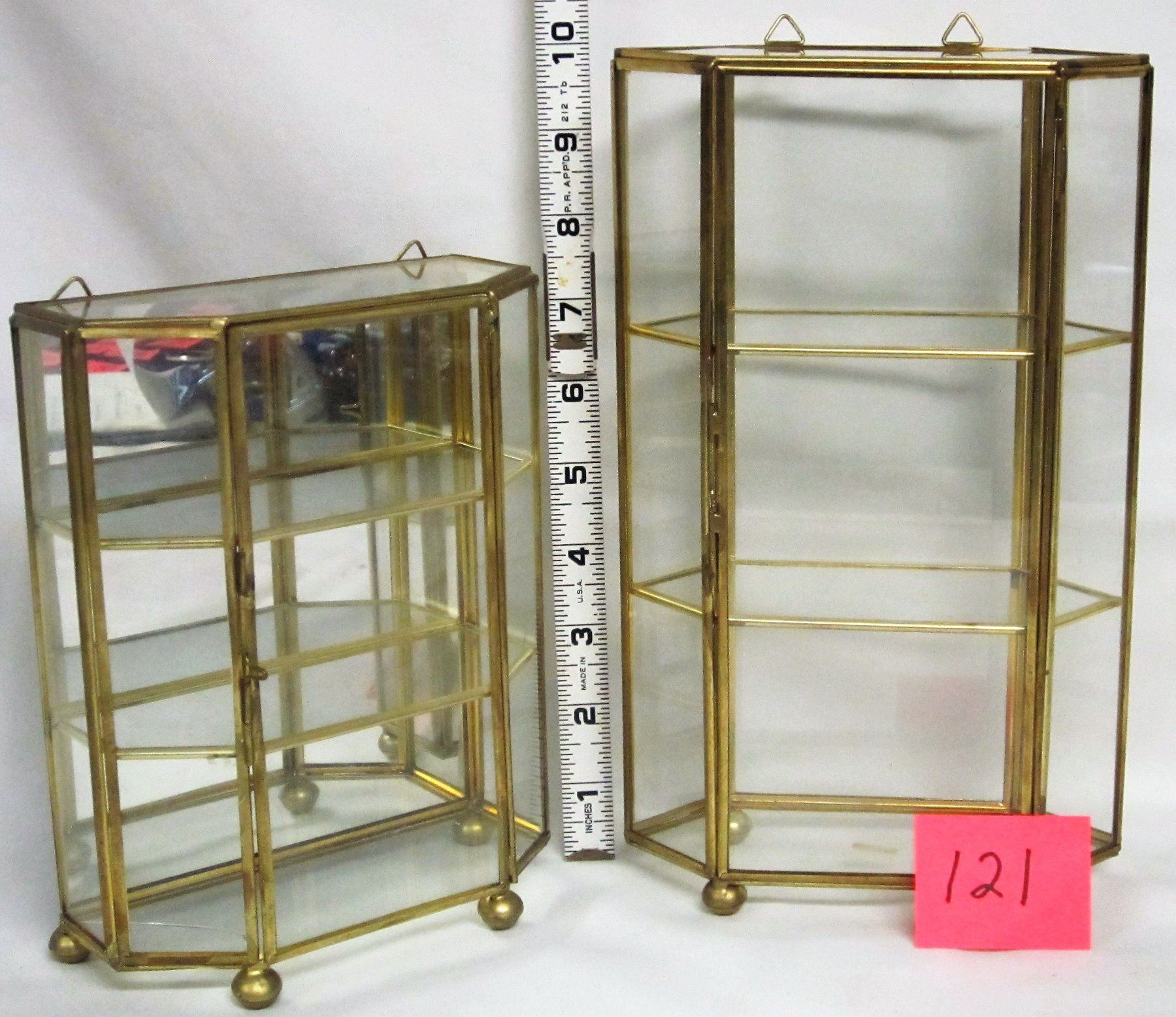 2 miniature brass & glass mirrored display cases