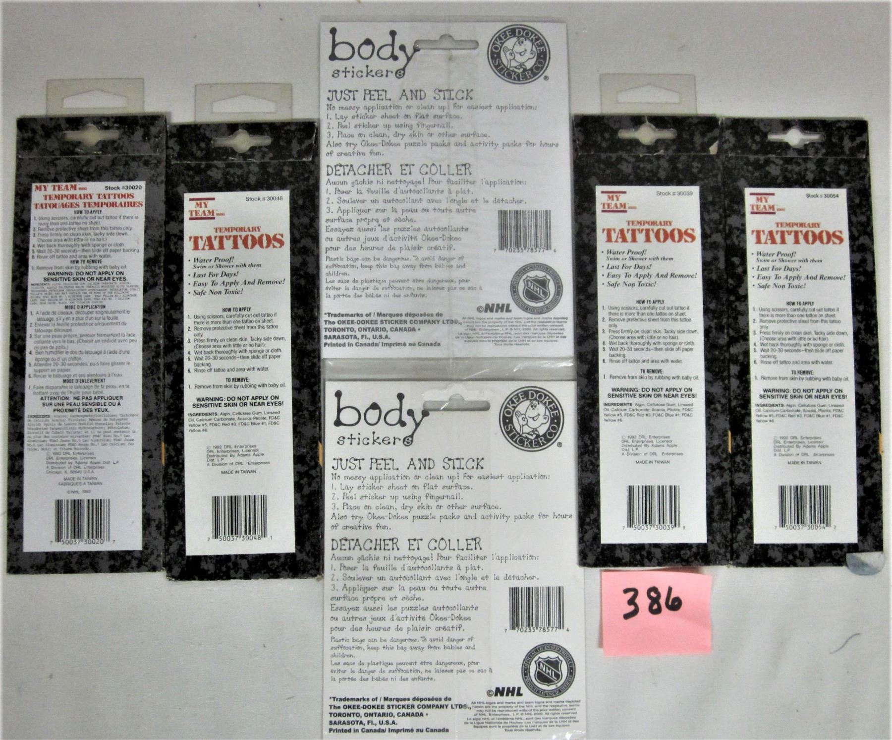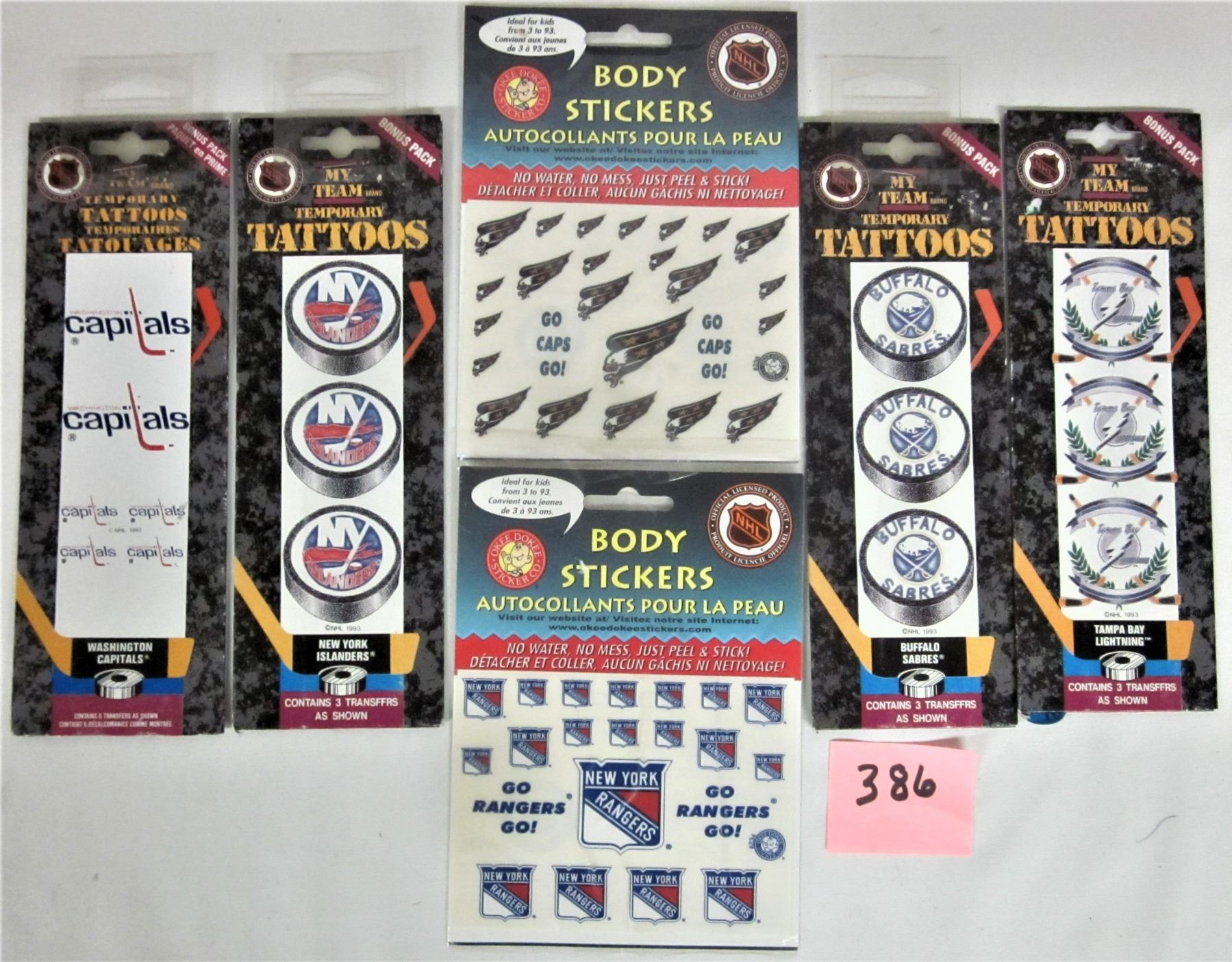 2 new 2000 NHL body stickers-Washington capitals+ Vancouver, chicago,Edmonton,NYR team stickers+ New York rangers+4 1993 new NHL temporary tattoos of Washington,NYI, Buffalo, Tampa bay