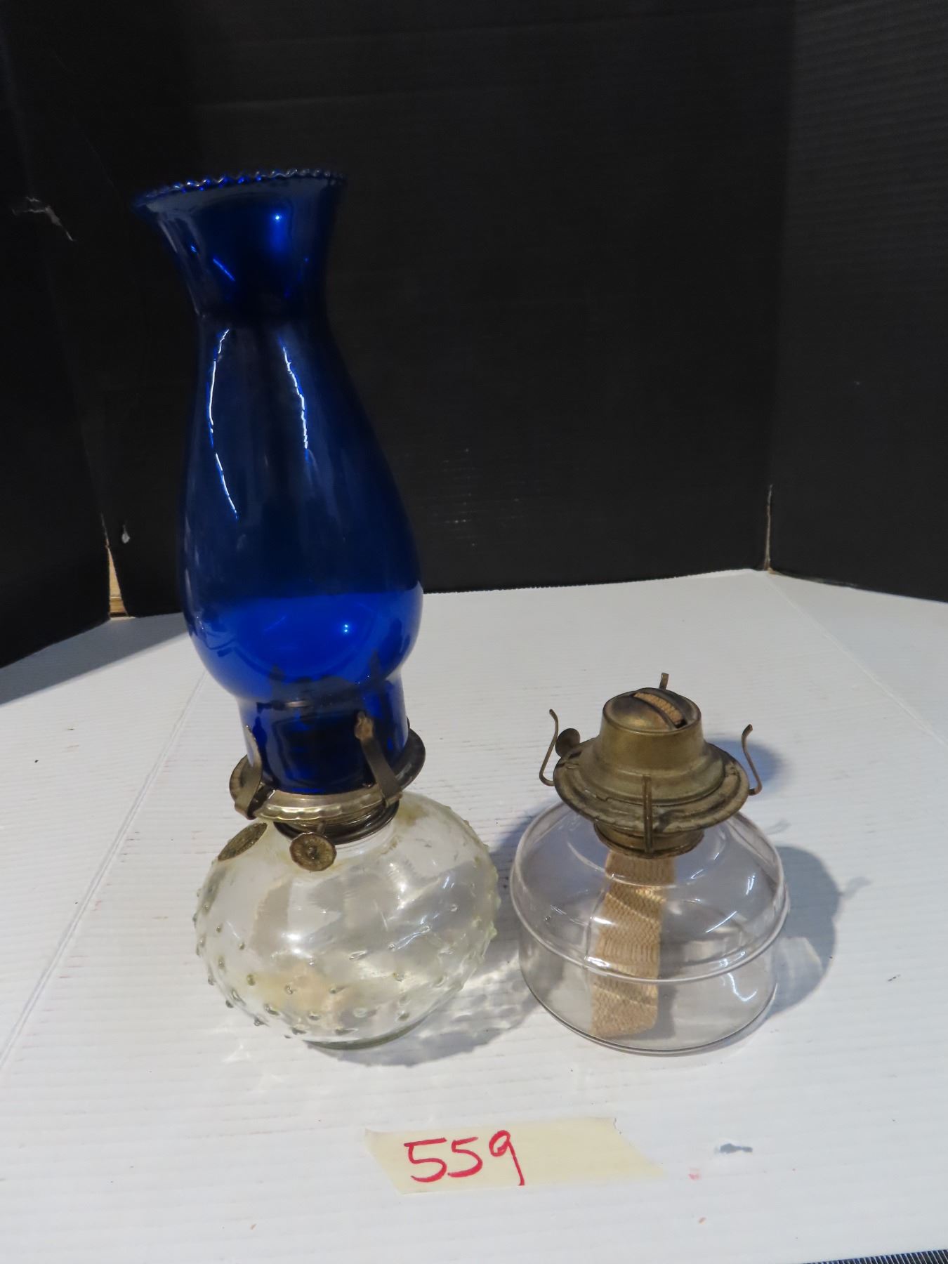 2 oil lamps- 1 with chimney
