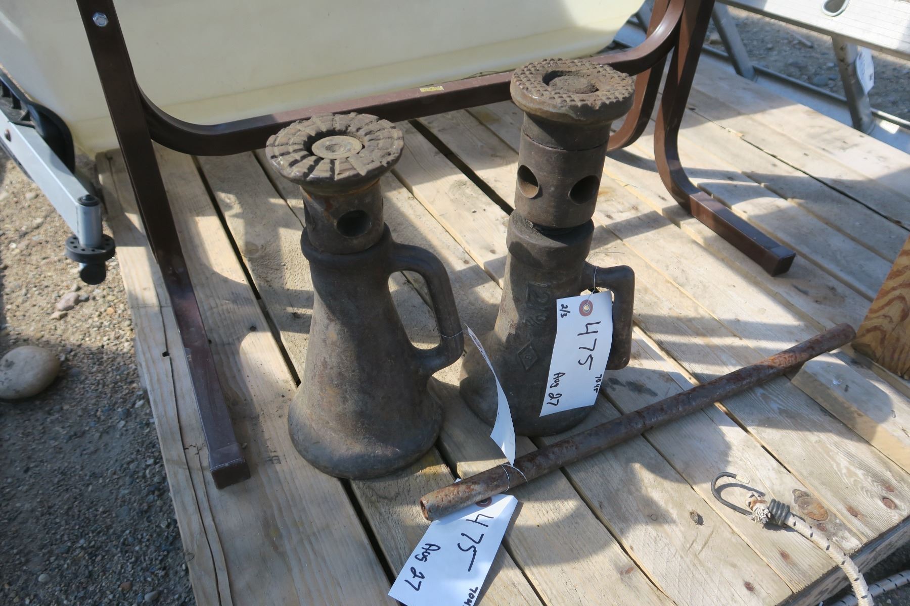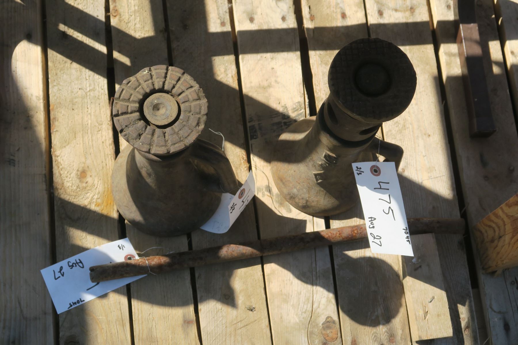 2 old bottle jacks with handles.