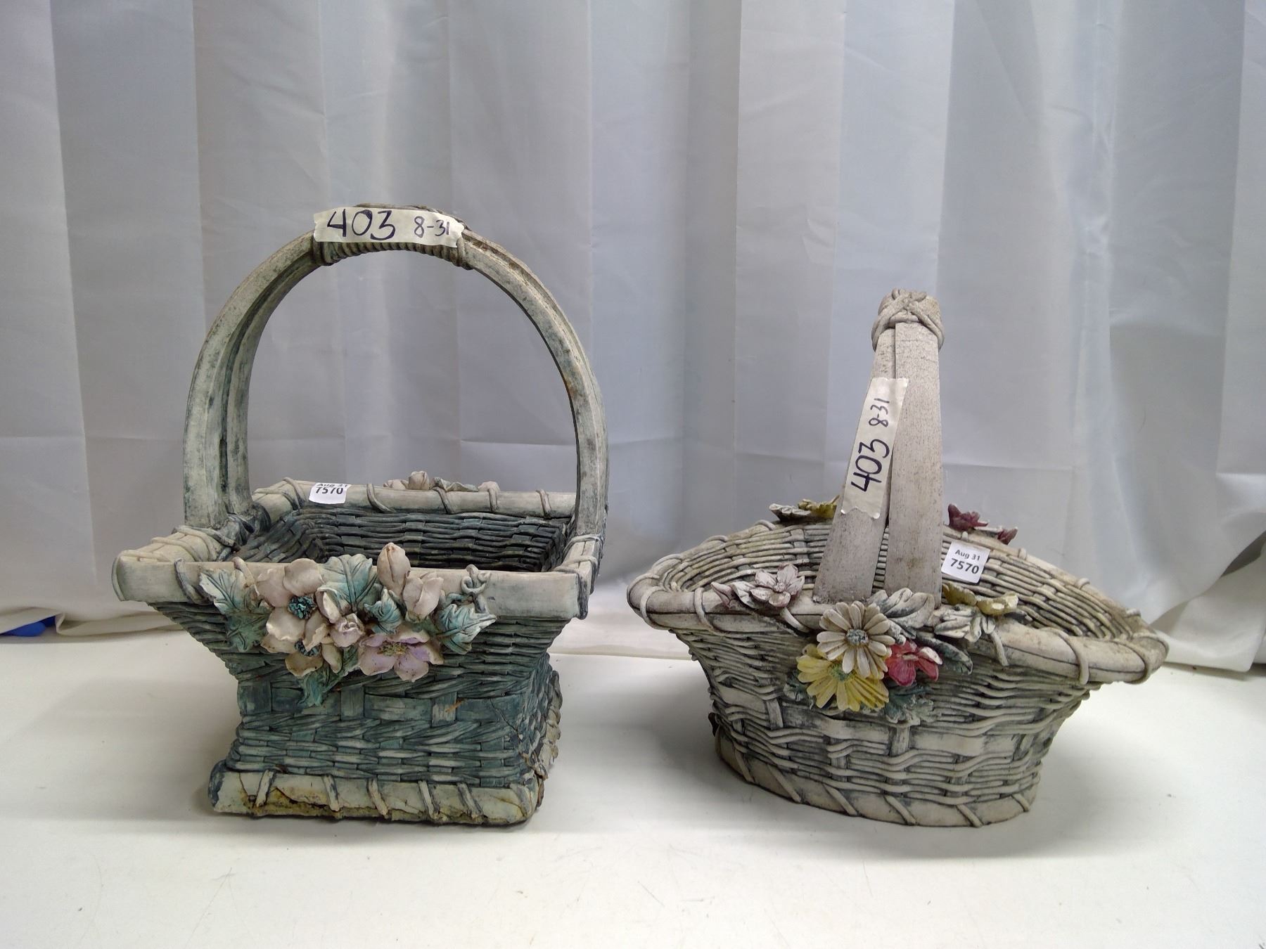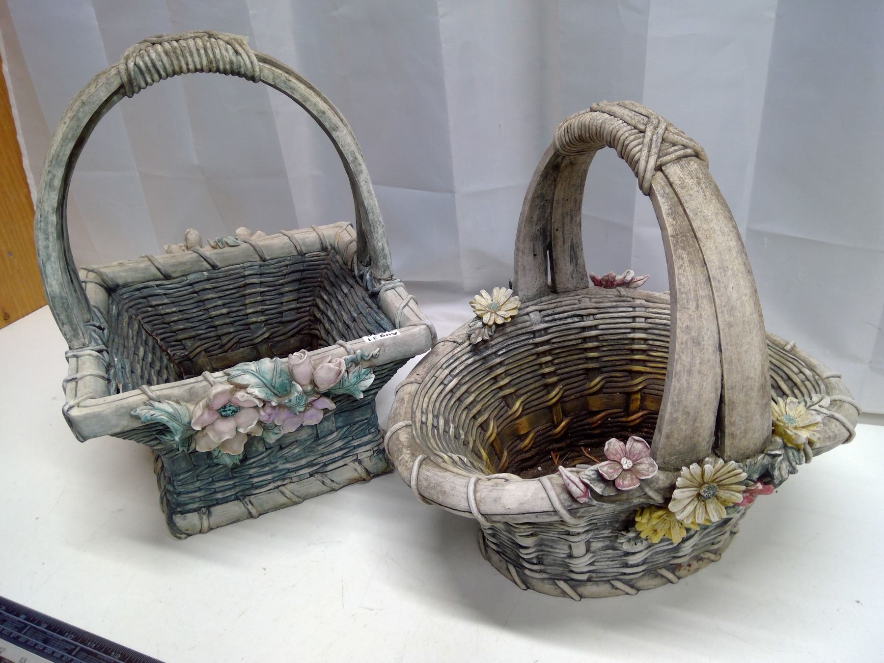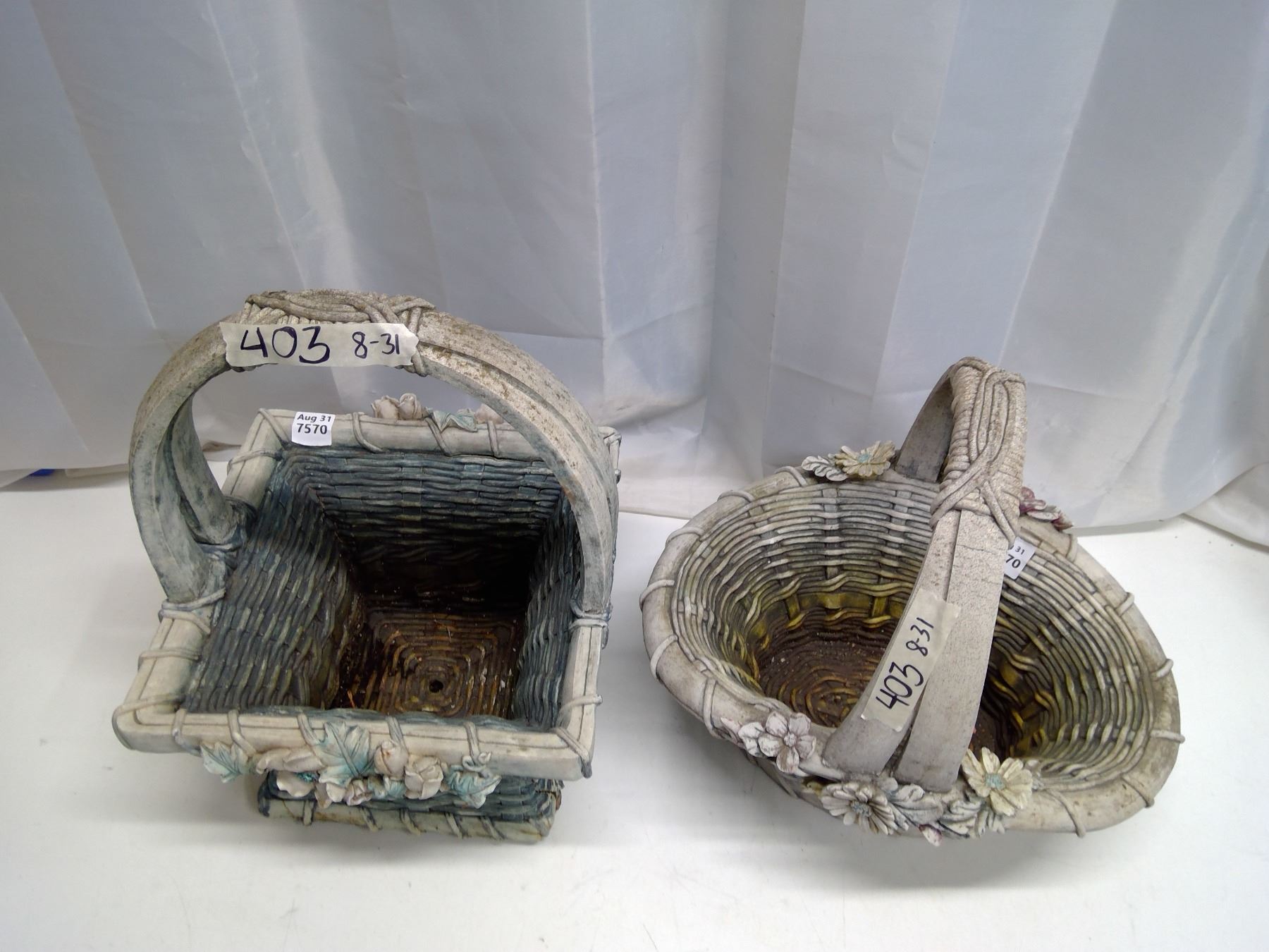 2 outdoor ceramics Basket planters, approx 1ft x 1ft