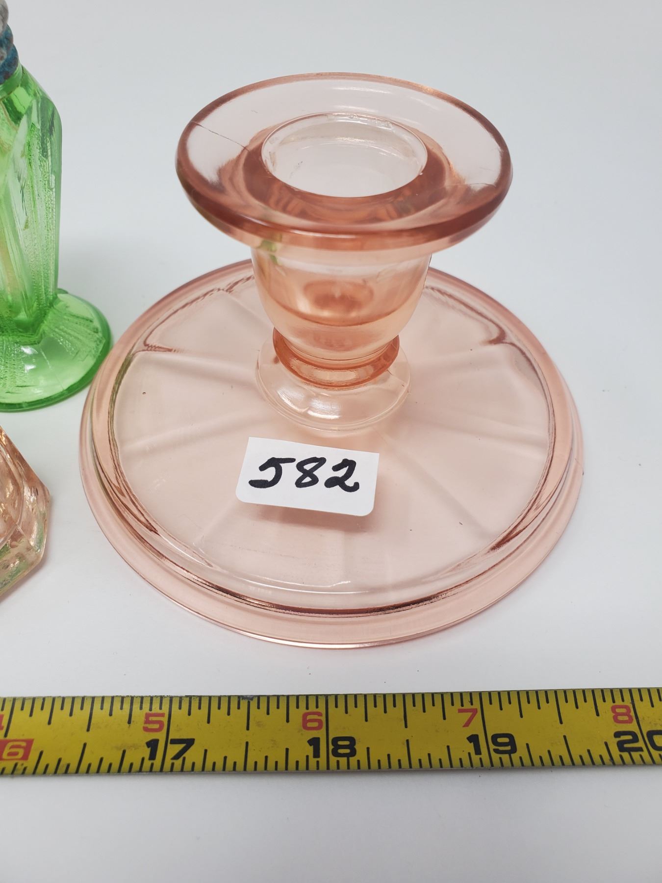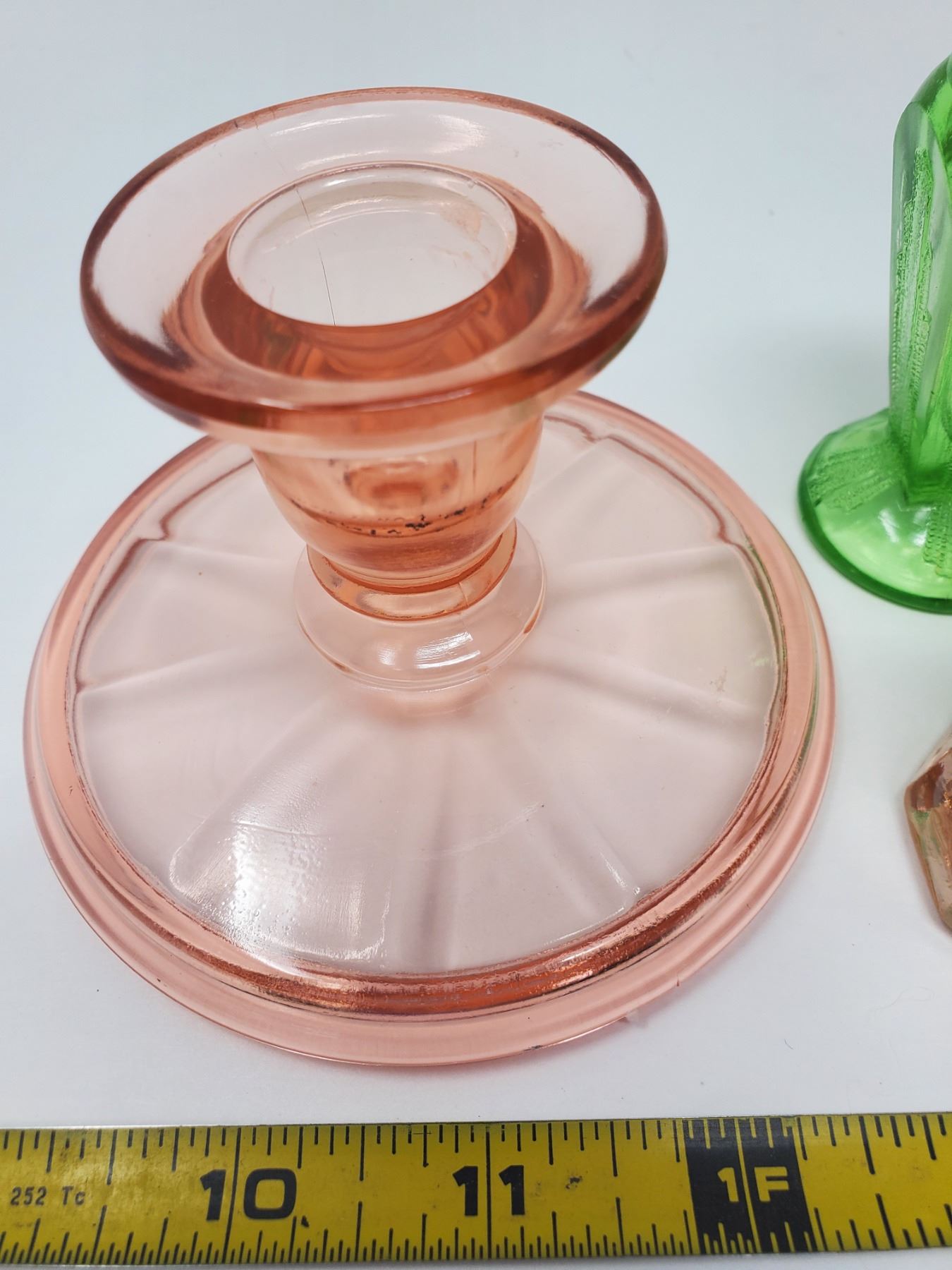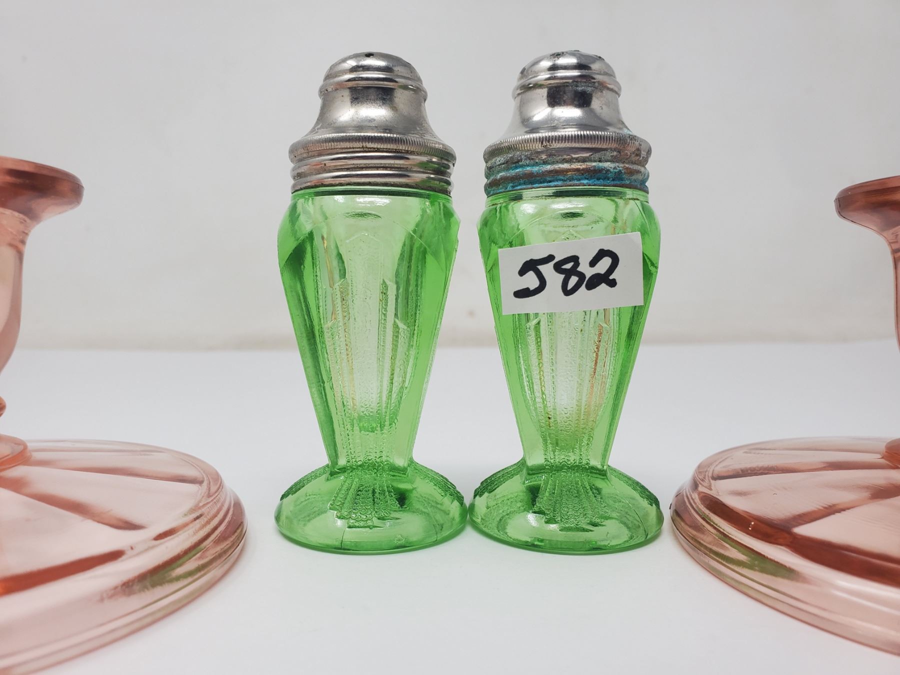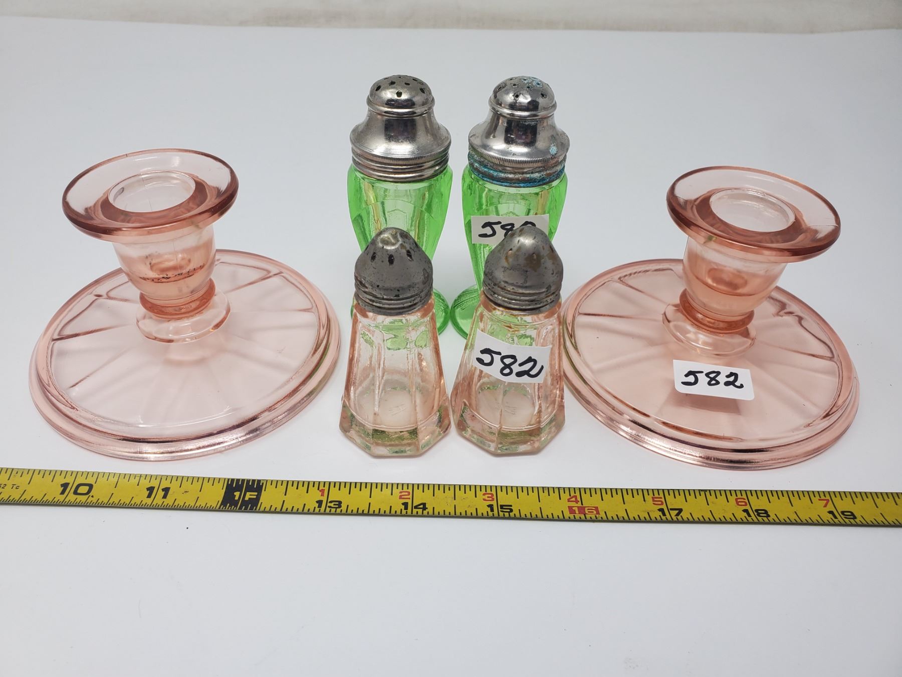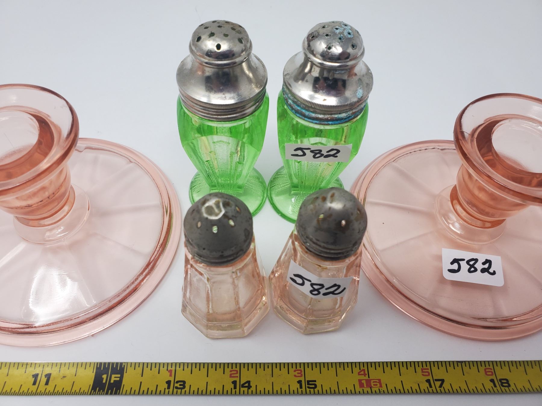 2 pair depression glass salt & peppers, pair of candle holders