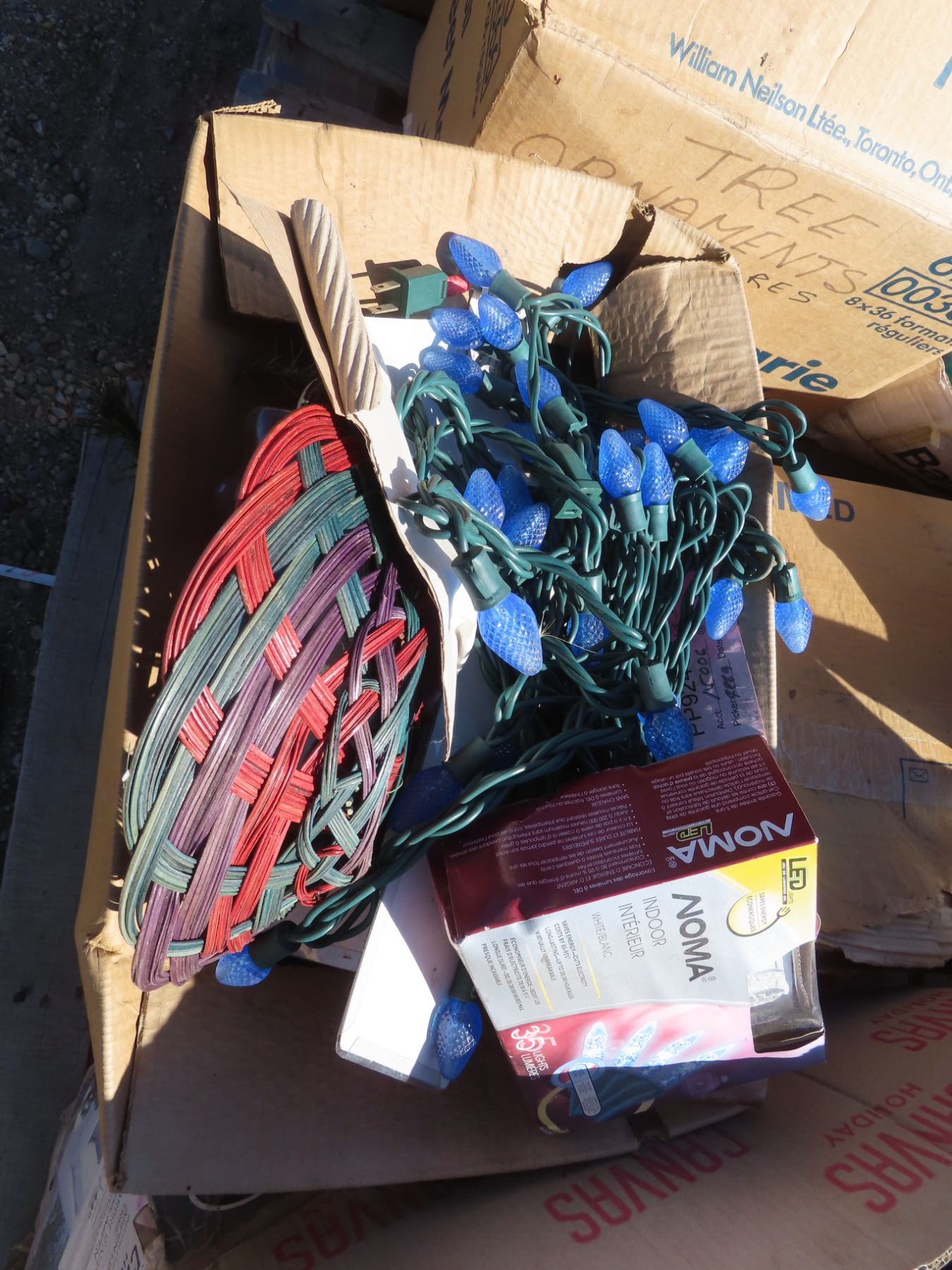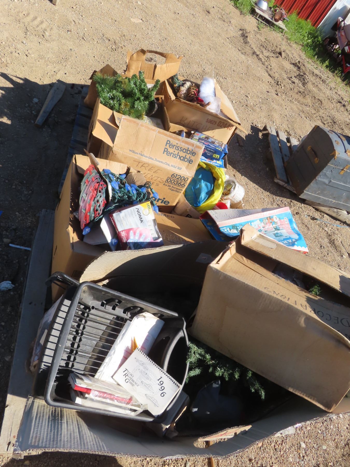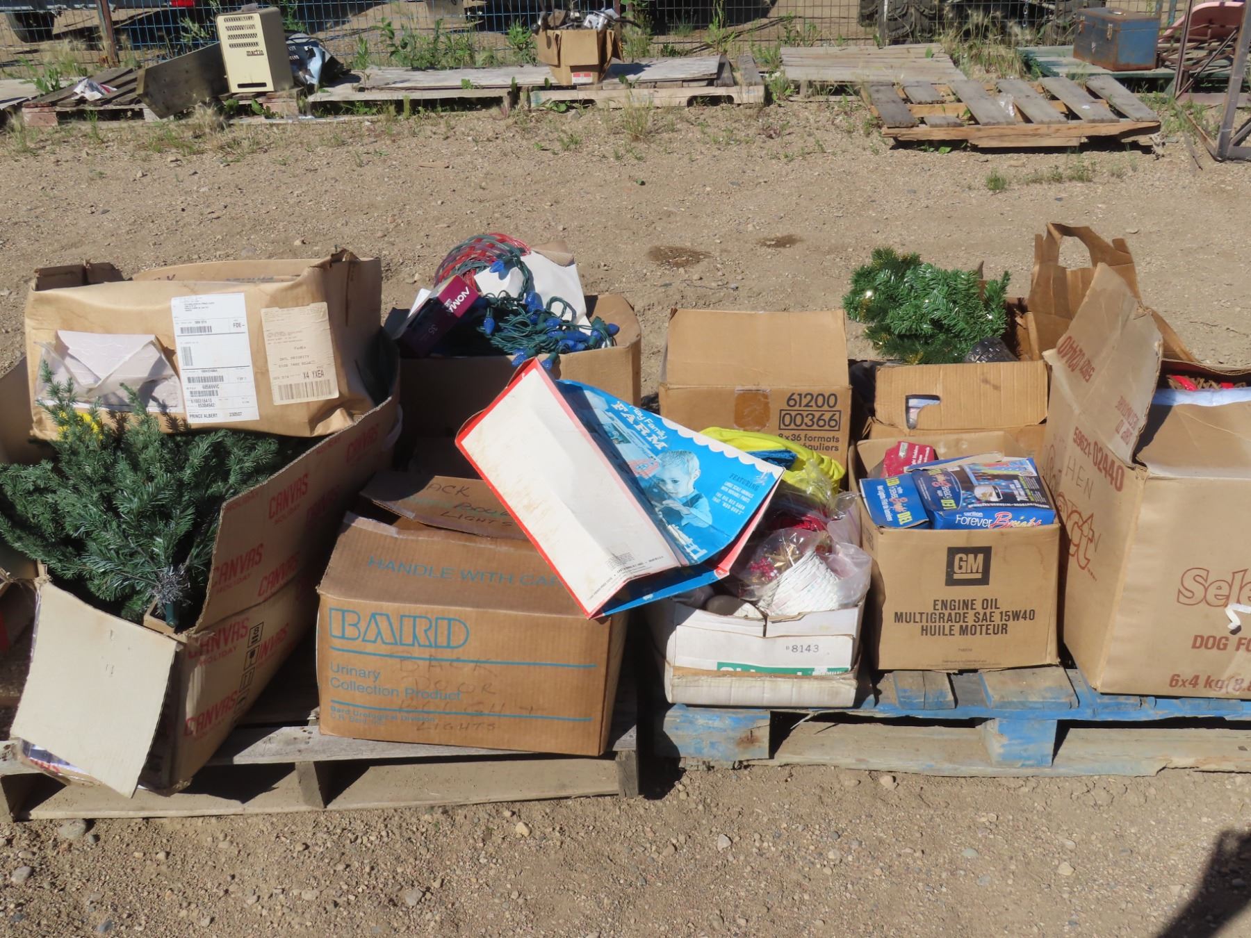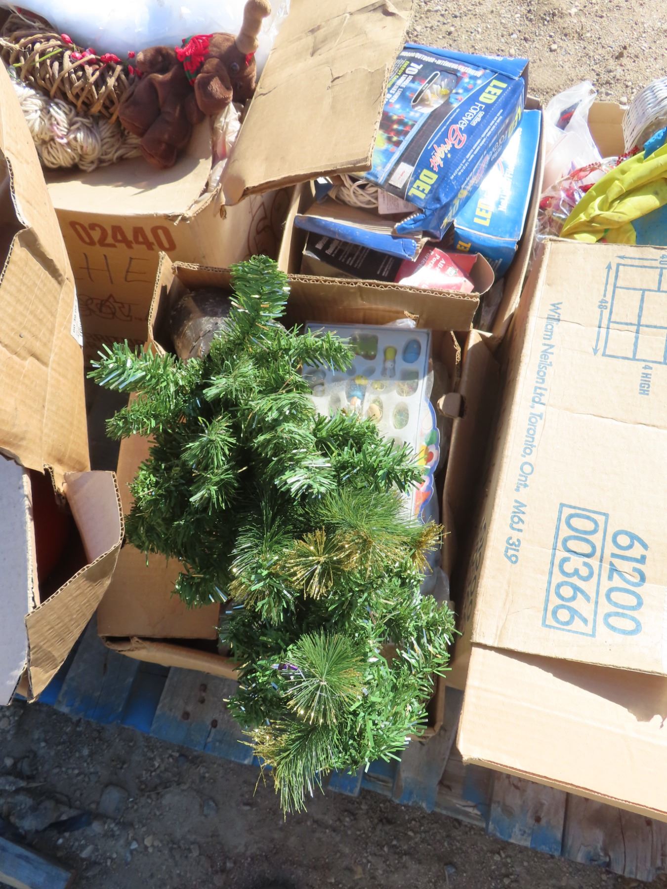 2 pallets of christmas stuff , lights , ornaments , trees , gift bags