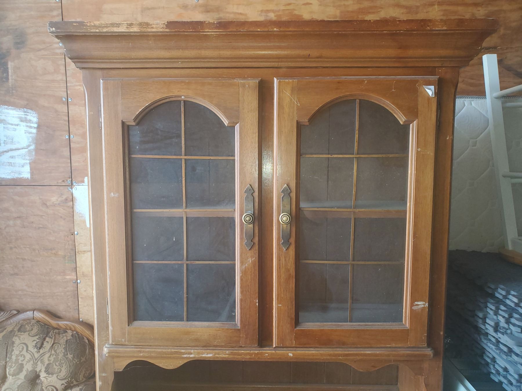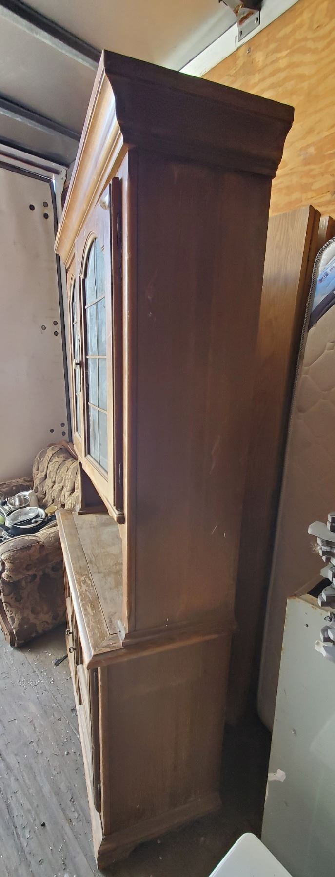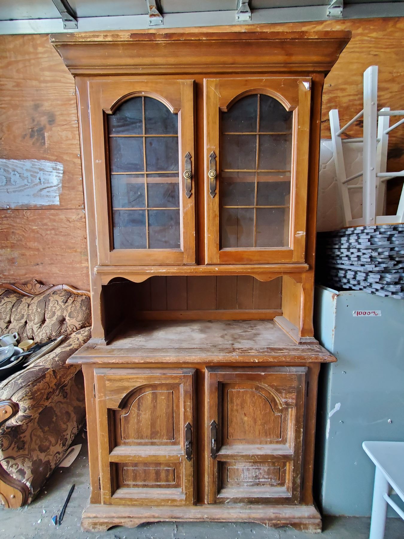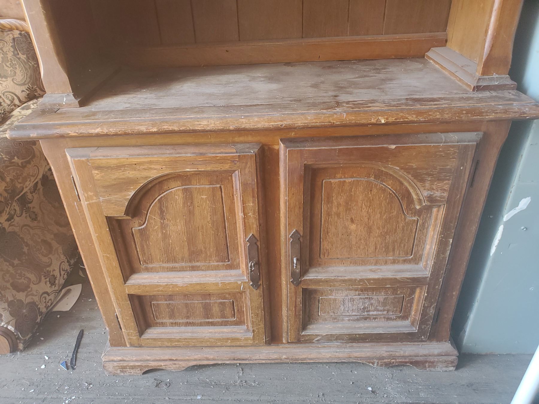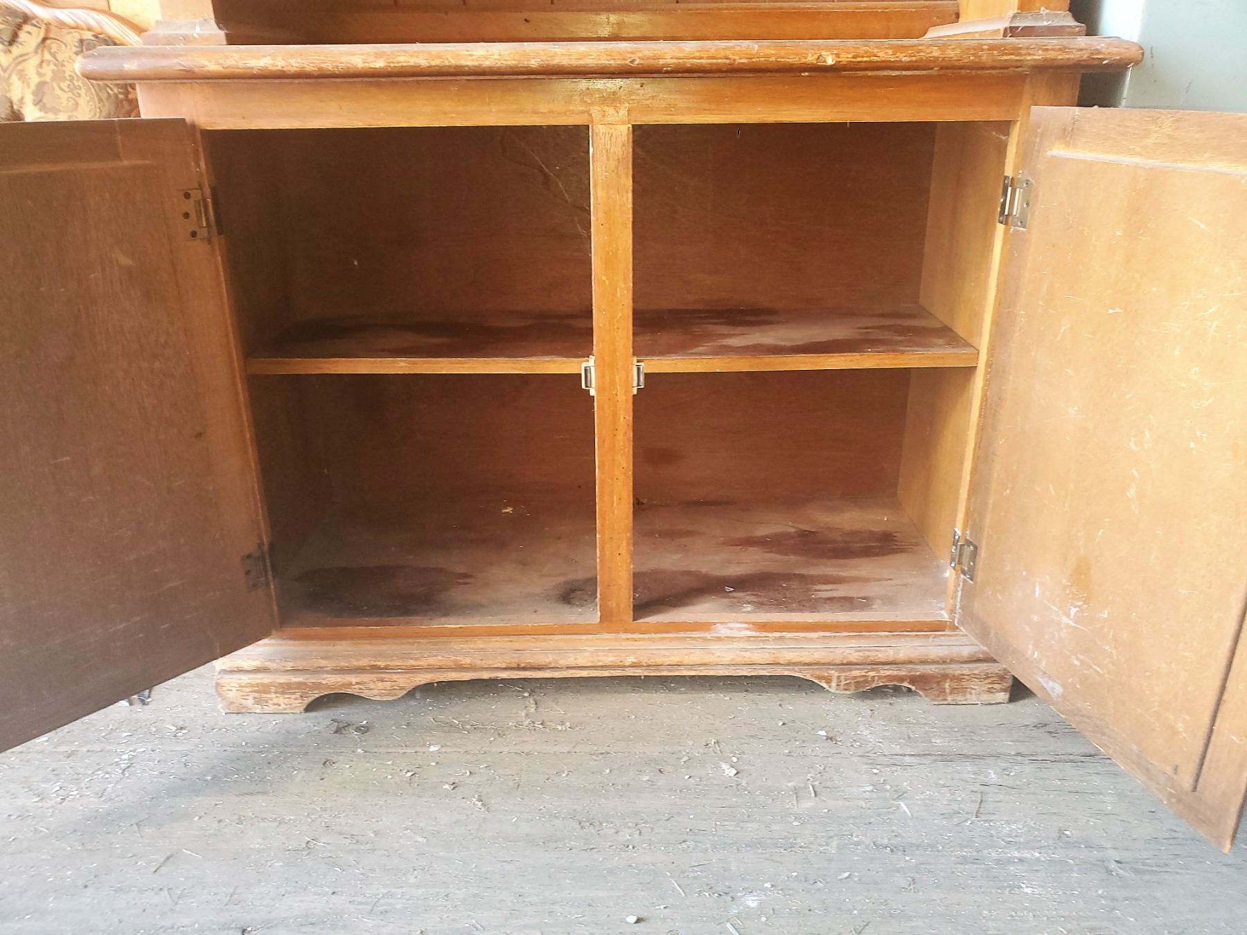 2 piece wooden buffet & hutch 77 1/4" x 42.5" x 17" (needs refinishing)