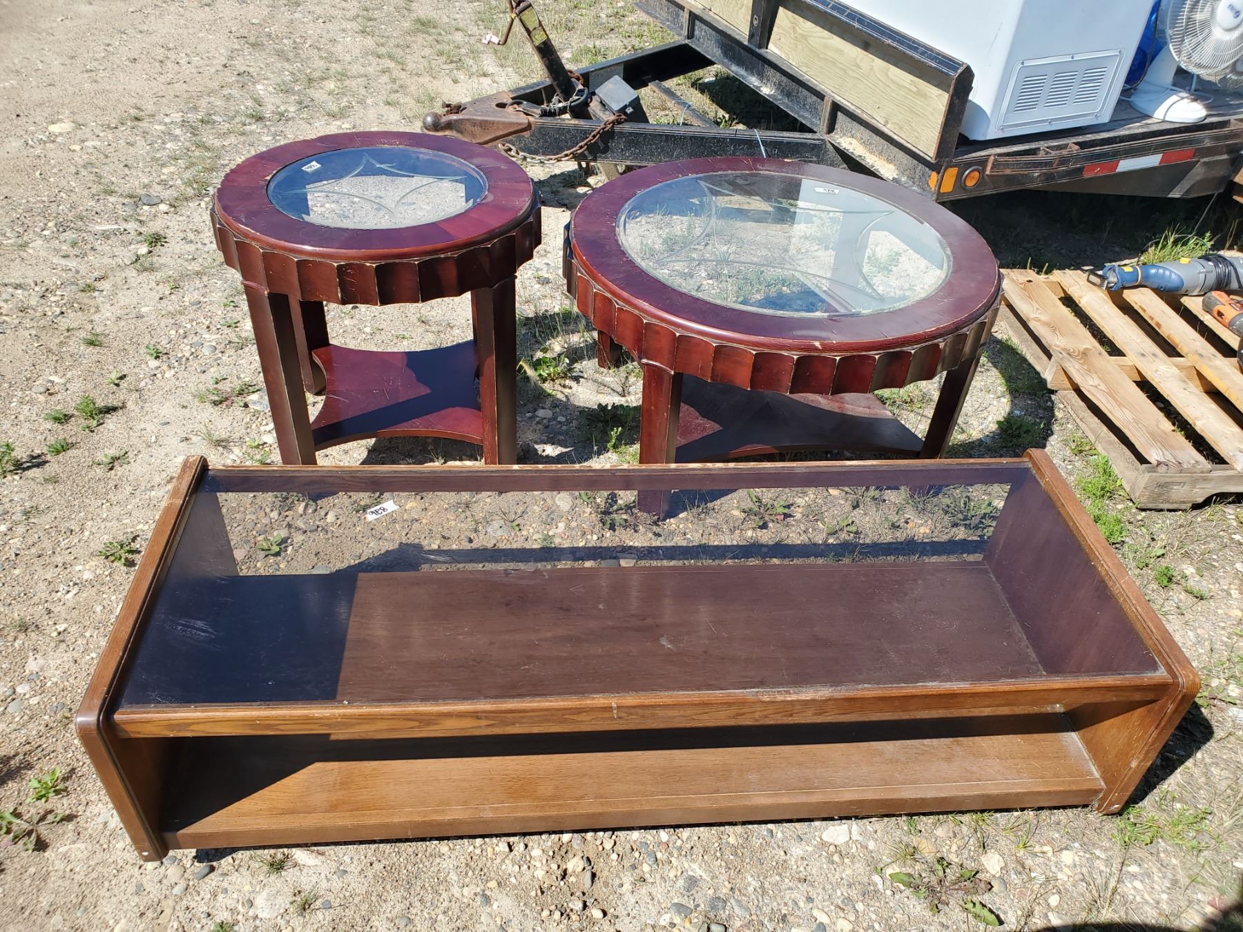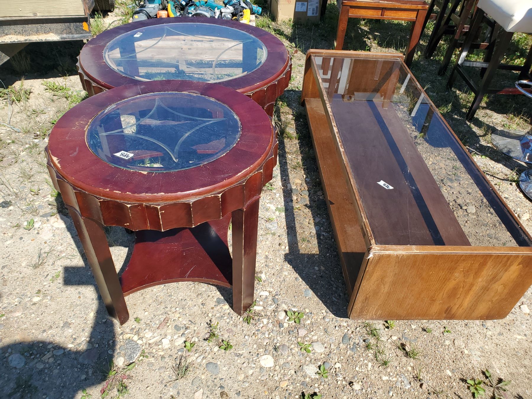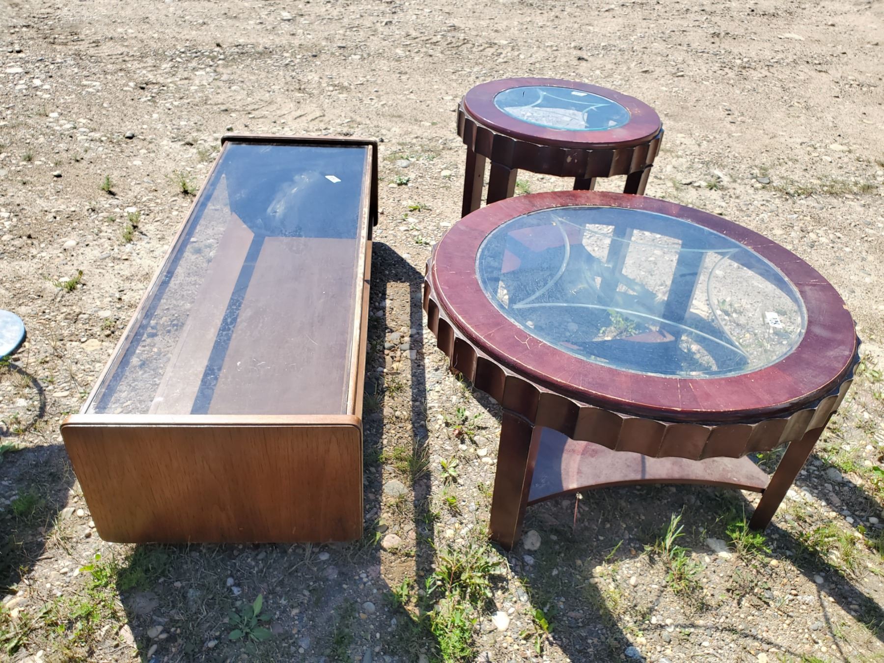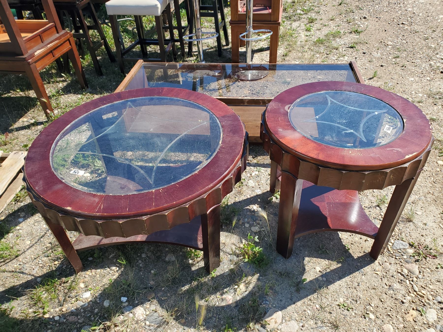 2 round wood & glass tables + rectangular coffee table