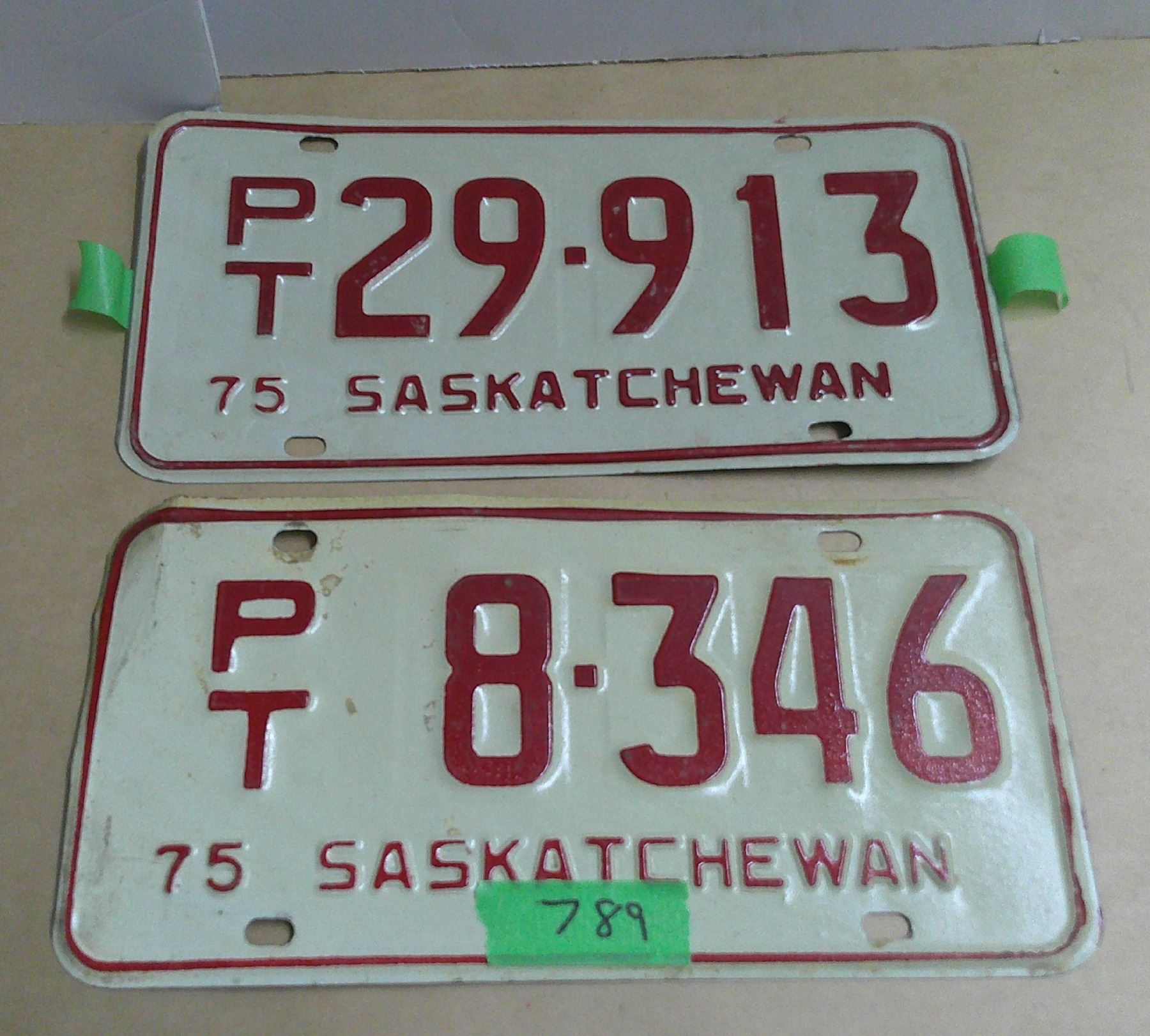 (2) sask license plates 1975 PT