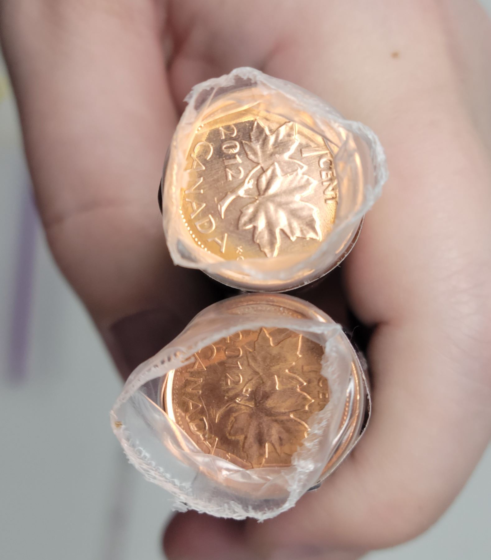 2 sealed rolls Canada's last one cent coins (Original 50 coin mint rolls, copper plated steel & copper plated zinc)